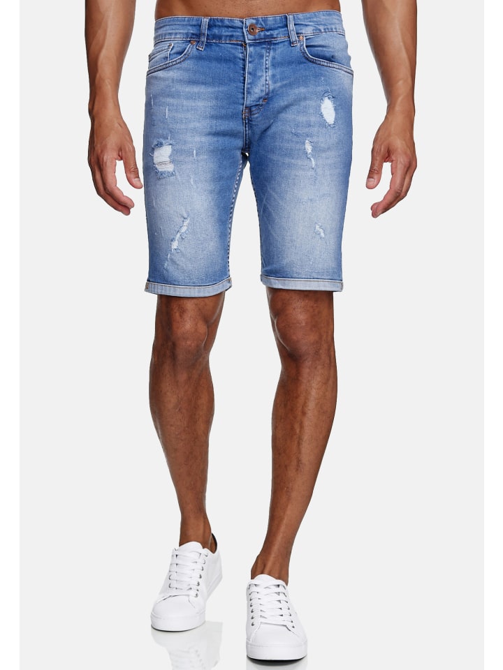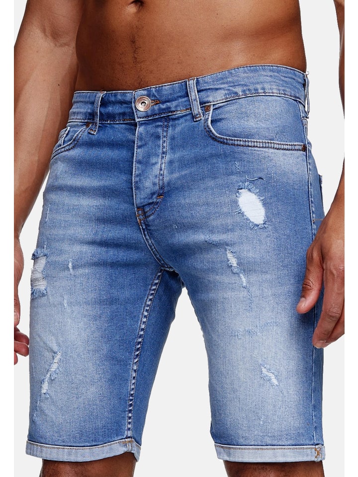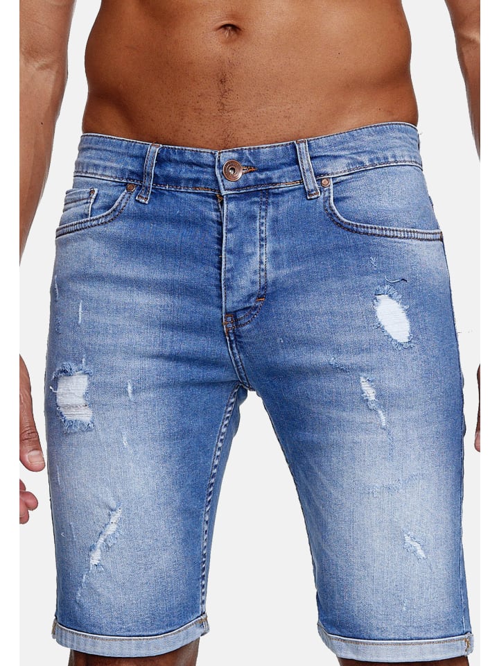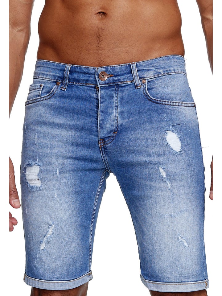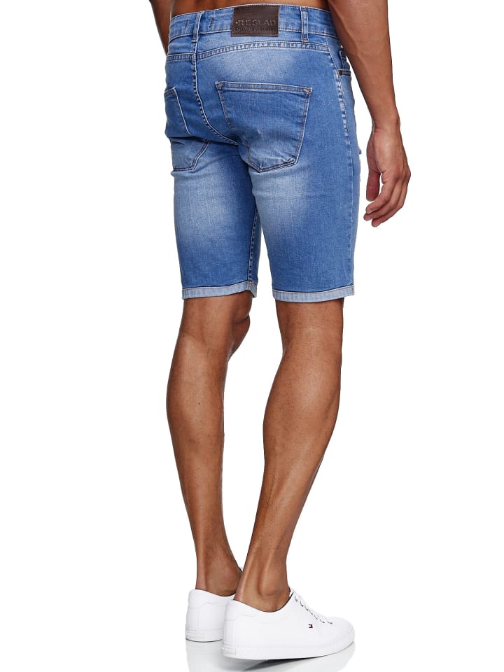 Джинсовые шорты рваные, стираные, средне-синего цвета RESLAD