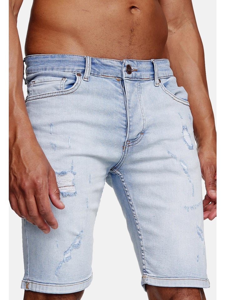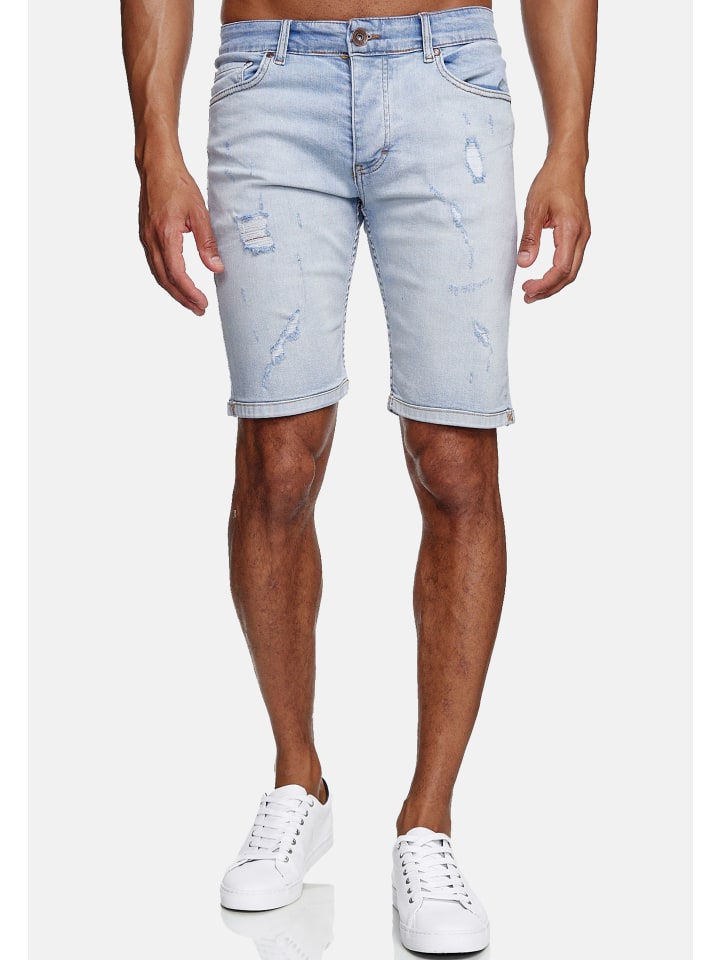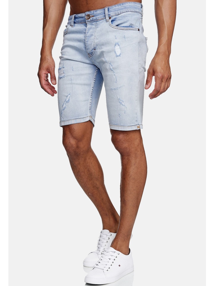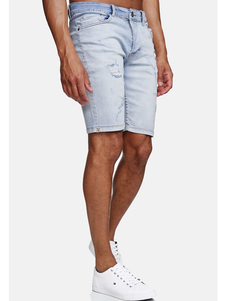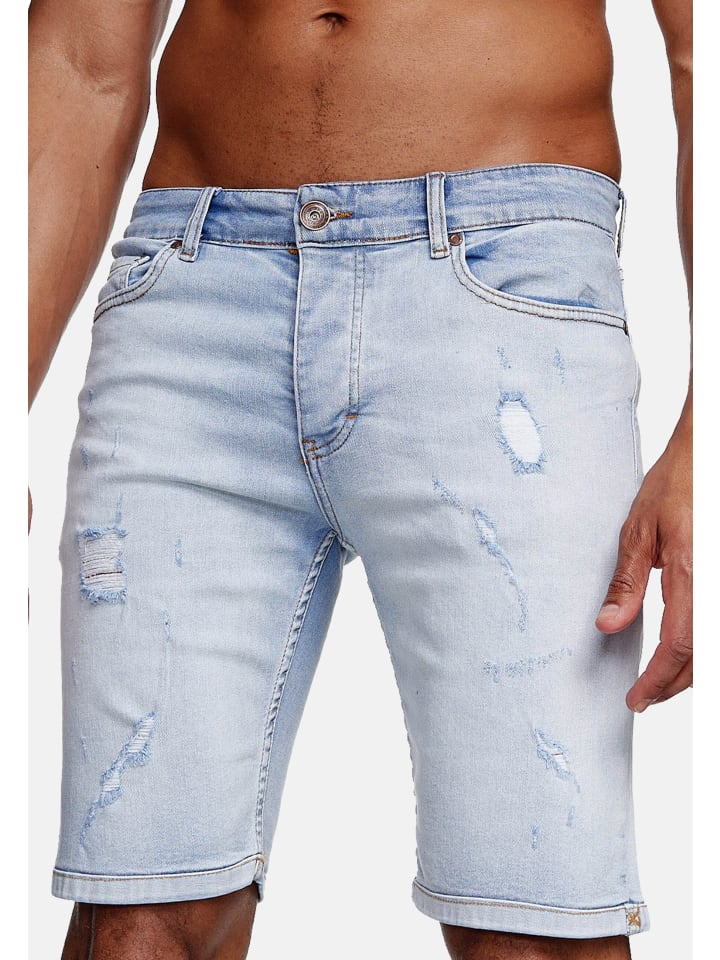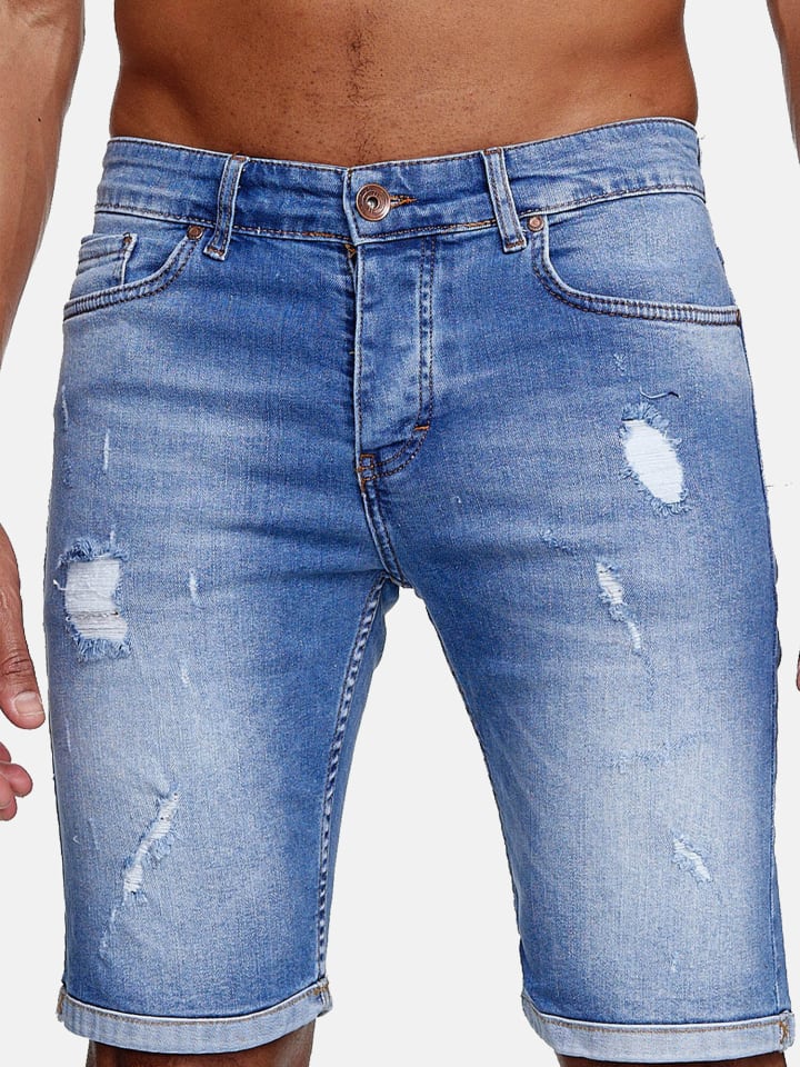 Джинсовые шорты рваные, стираные, средне-синего цвета RESLAD