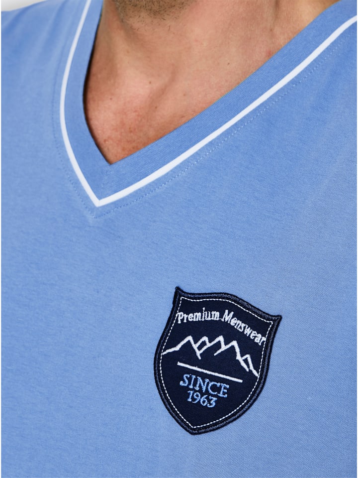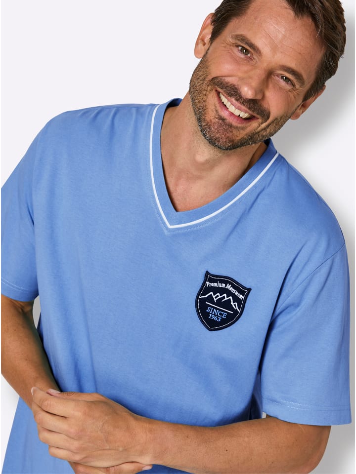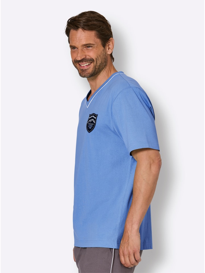 Воздушный одинарный трикотаж: Пижамная рубашка от Wäschepur из чистого хлопка. С короткими рукавами, V-образным вырезом, контрастной окантовкой и декоративной нашивкой с гербом на уровне груди. Сертифицировано GOTS.