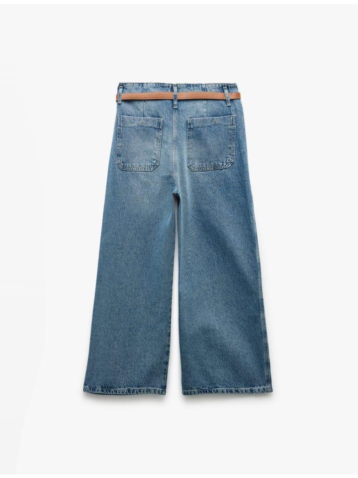 Эти стильные джинсы с высокой талией обеспечивают максимальный комфорт и свободу движений. Широкие штанины создают современный силуэт, а пояс добавляет изюминки. Эти джинсы идеально подходят для повседневной носки или особых случаев, они модные и универсальные. Сочетайте их с простой футболкой или элегантной блузкой для создания самых разных образов.