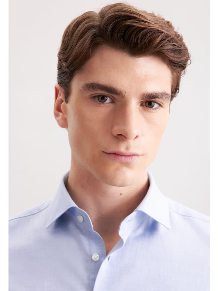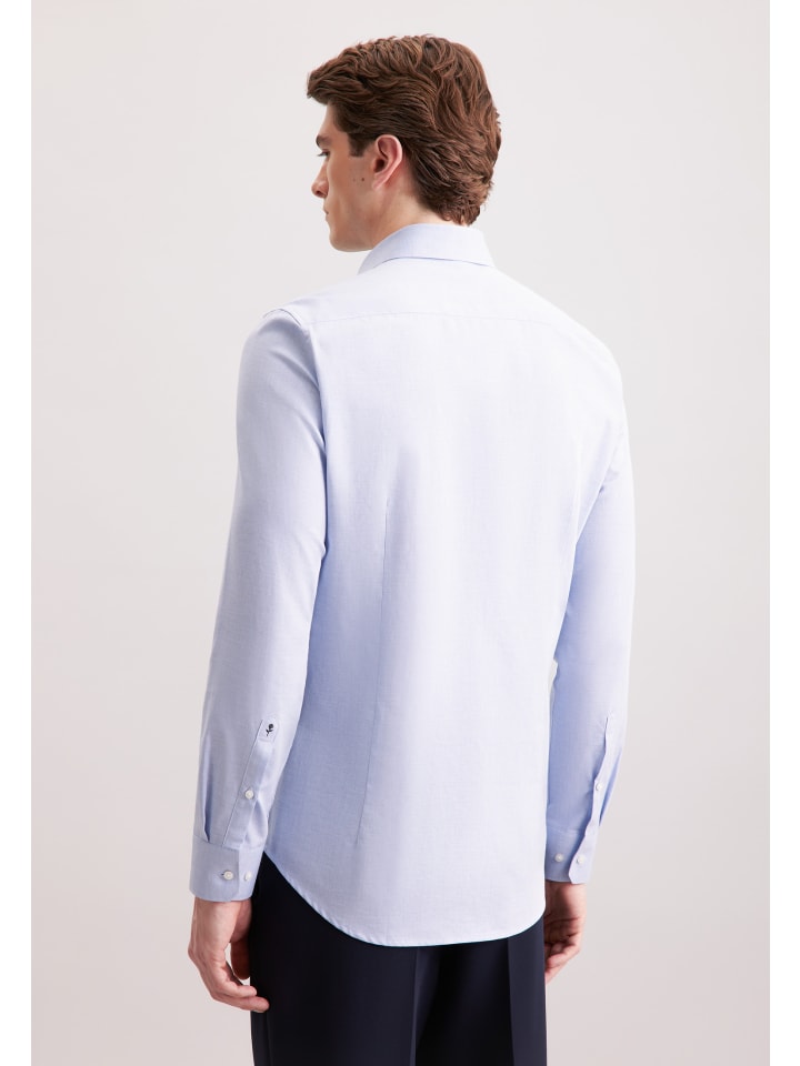 Узкая фланелевая рубашка средне-синего цвета Seidensticker