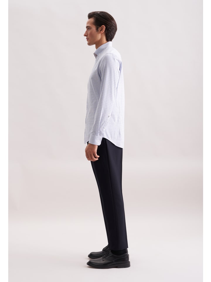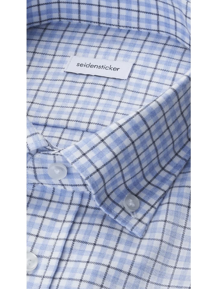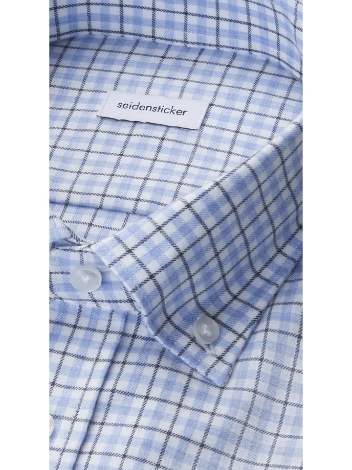 Узкая фланелевая рубашка средне-синего цвета Seidensticker