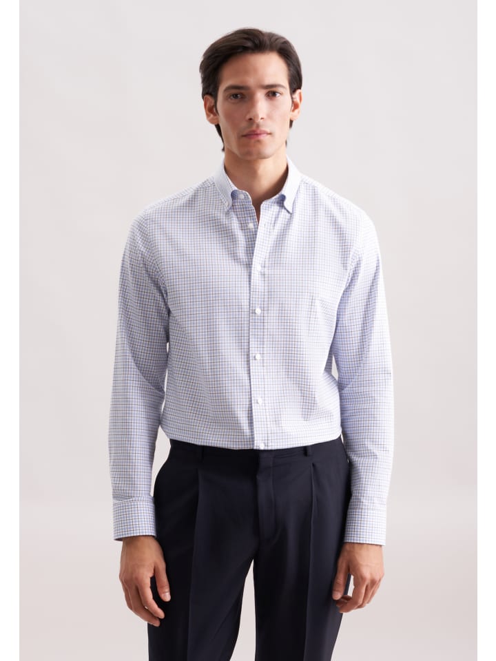 Мужская эстетика: фланелевая рубашка 1/1 из коллекции «SMART FLANNELS» от Seidensticker добавит изысканности вашему гардеробу, идеально отражая дух времени. Благодаря своему элегантному крою эта приталенная фланелевая рубашка отражает актуальные тенденции и гармонично вписывается в любой образ. Клетчатый узор делает эту новую модель идеальным выбором для стильных образов. Эта рубашка воплощает в себе вневременную элегантность в современной интерпретации. Благодаря воротнику на пуговицах спортивный, современный характер особенно подчеркивается.