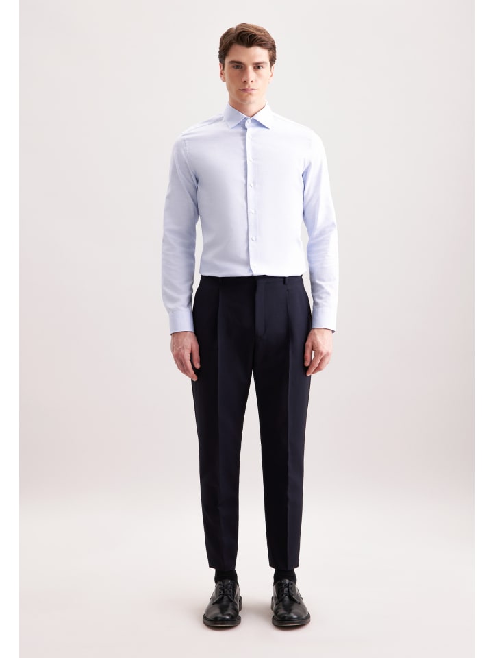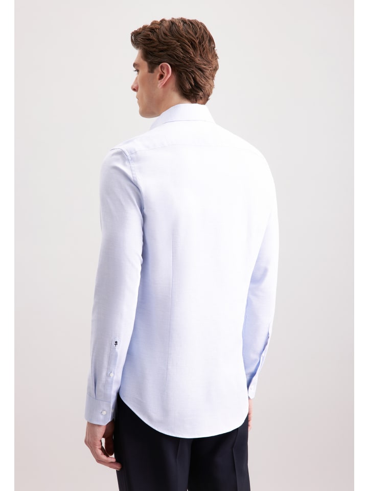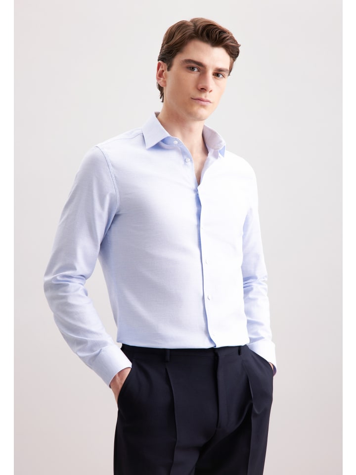 Узкая фланелевая рубашка средне-синего цвета Seidensticker