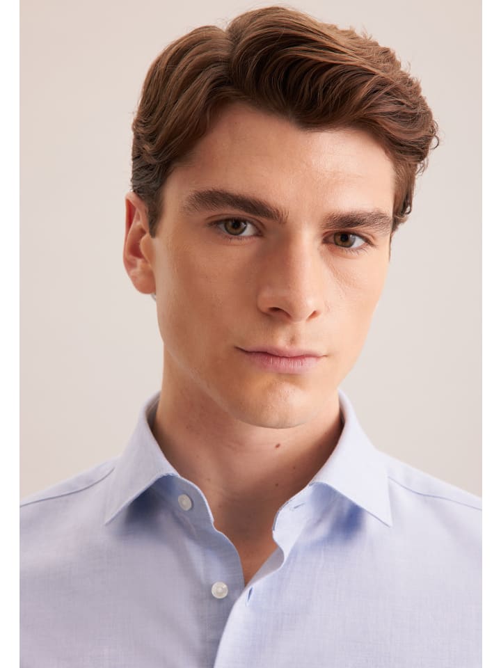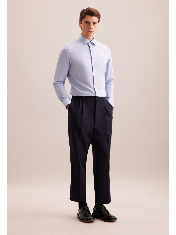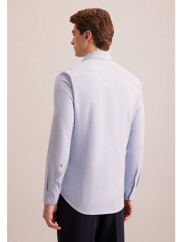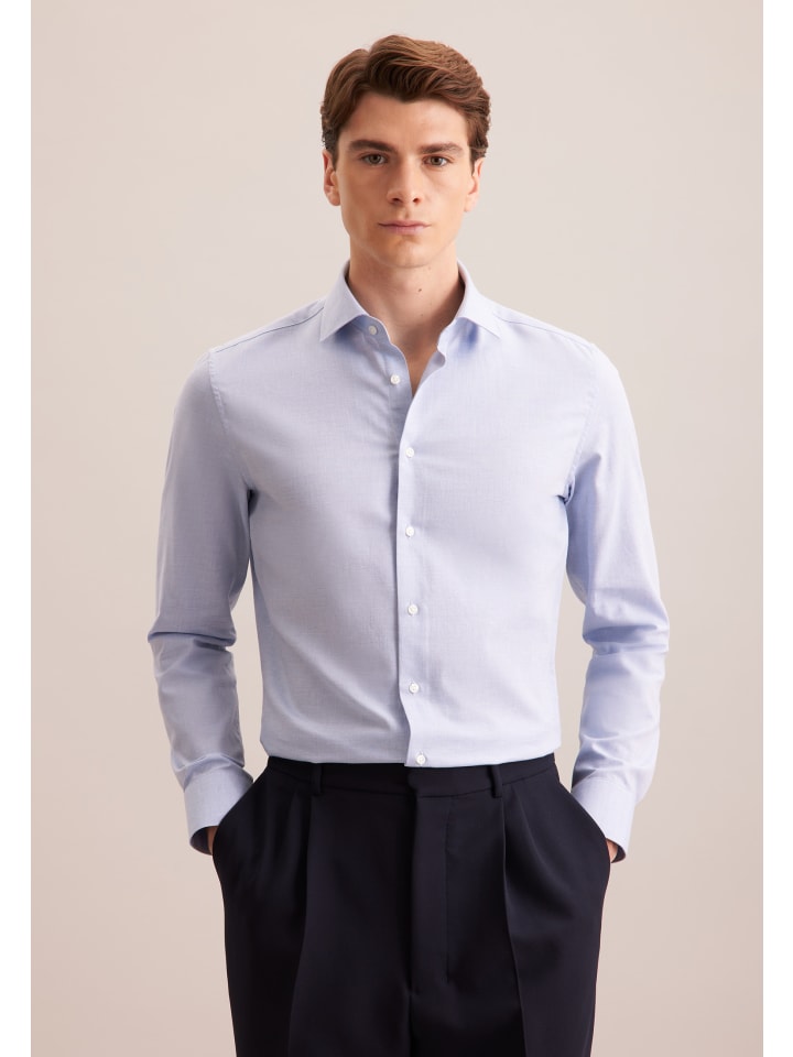 Рубашка X-Slim из фланели средне-синего цвета Seidensticker