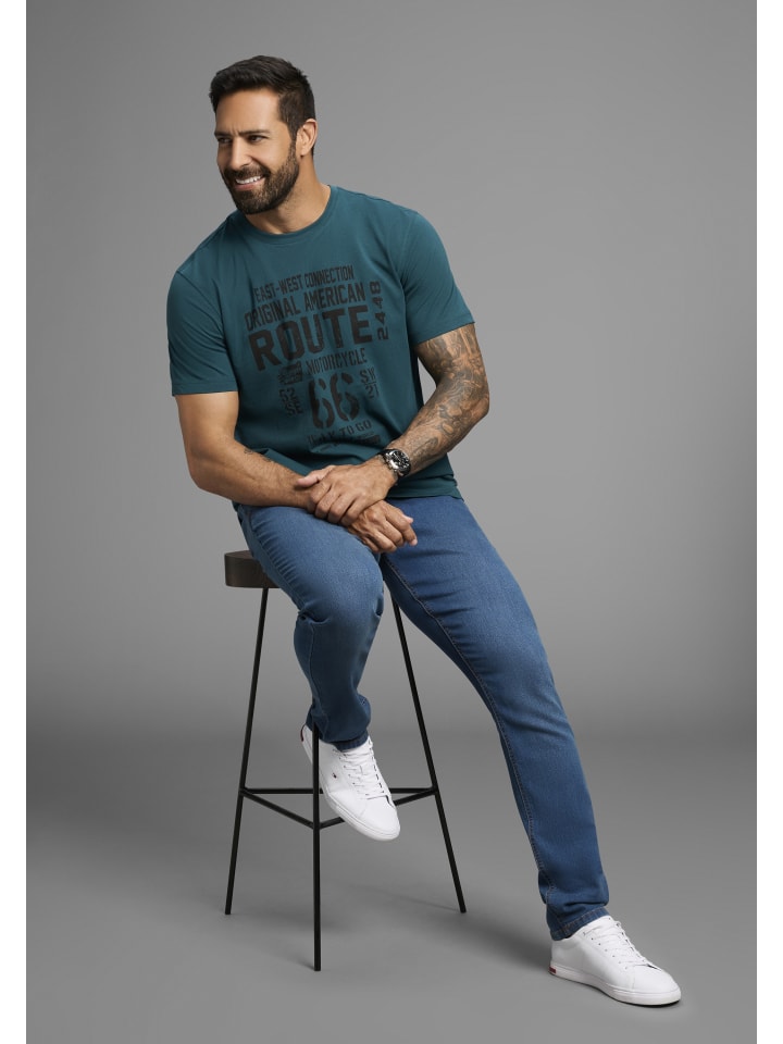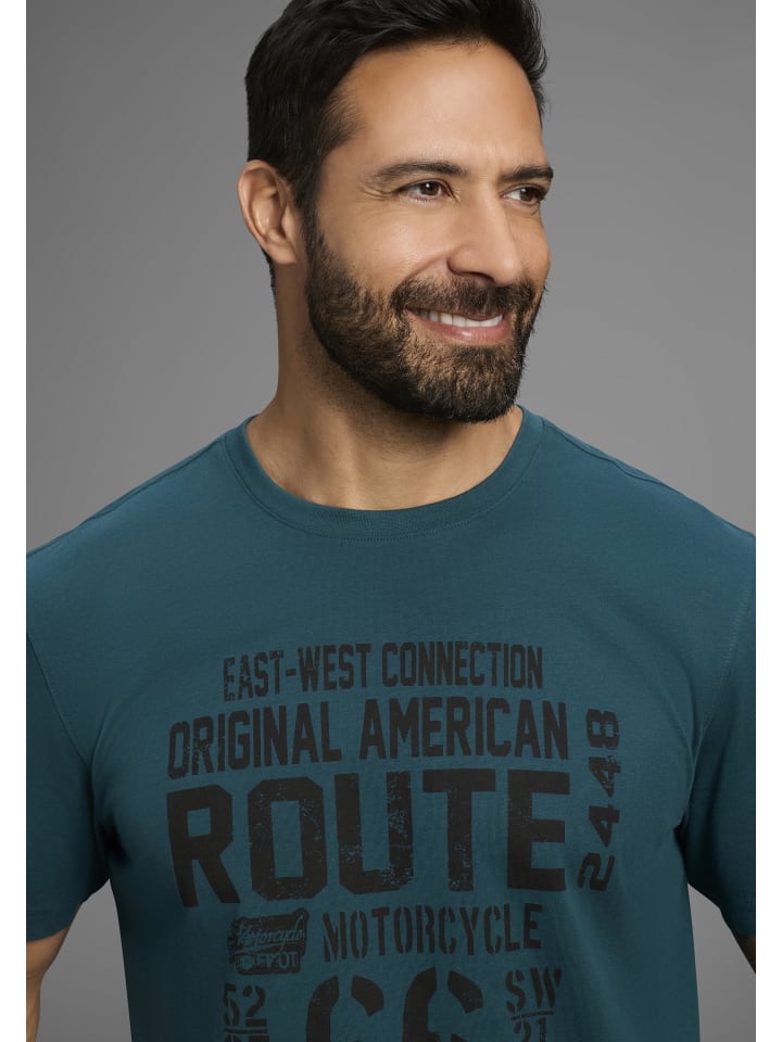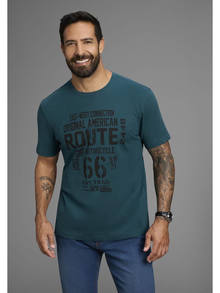 Простая мужская футболка с круглым вырезом от Man's World с напечатанными акцентами. Классический крой. Короткие рукава. Изготовленная из эластичного и мягкого трикотажного полотна, эта футболка обеспечивает удобную посадку.