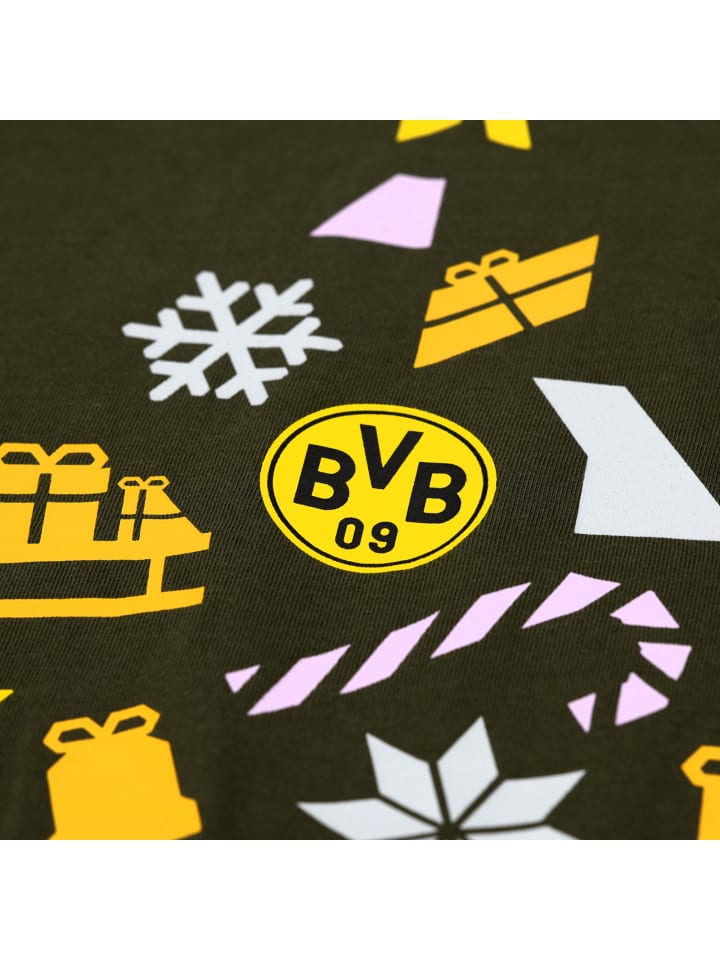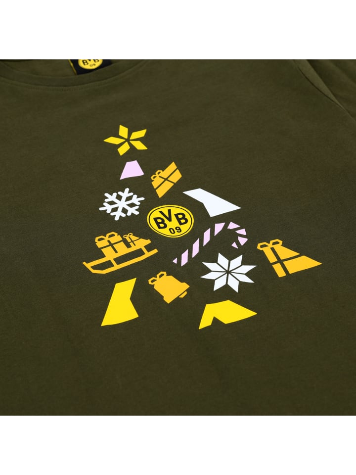 Внесите рождественское настроение в повседневную жизнь болельщика BVB с этой футболкой! Темно-зеленая футболка украшена вышивкой с любовью выполненных рождественских мотивов в форме рождественской елки. Футболка изготовлена из 100% органического хлопка и обеспечивает максимальный комфорт. Будь то стильный акцент на следующей рождественской вечеринке или подарок для настоящих фанатов BVB - эта футболка объединит вашу любовь к клубу и праздничную атмосферу.