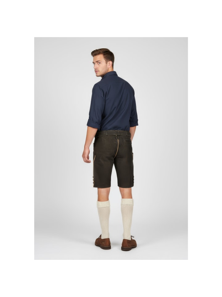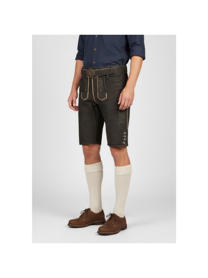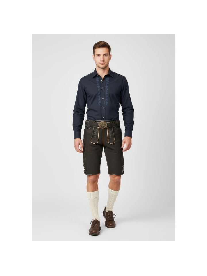 Кожаные брюки Caelius от Krüger - абсолютный маст-хэв на Октоберфесте. Мягкий, эластичный кожаный верх с эффектной вышивкой на бедрах и нагруднике делает их по-настоящему привлекательными. Еще одна изюминка - пряжка ремня с детальной отделкой. Ластовица сзади позволяет легко отрегулировать брюки по обхвату талии. Стильные пуговицы на нагруднике и штанинах идеально дополняют эти элегантные кожаные брюки. Сзади также есть карман для кошелька. На правой штанине вы найдете небольшой карман, идеально подходящий для хранения мелких предметов, таких как мелочь. Эти кожаные брюки сочетают в себе традиционное мастерство с практичными деталями и станут настоящей приманкой для глаз на Октоберфесте. - Мягкая и эластичная кожа - Брюки с ремнем - Изысканная вышивка - Ластовица на поясе для легкой регулировки по обхвату талии - Задний карман для кошелька. Материал: 100% кожа