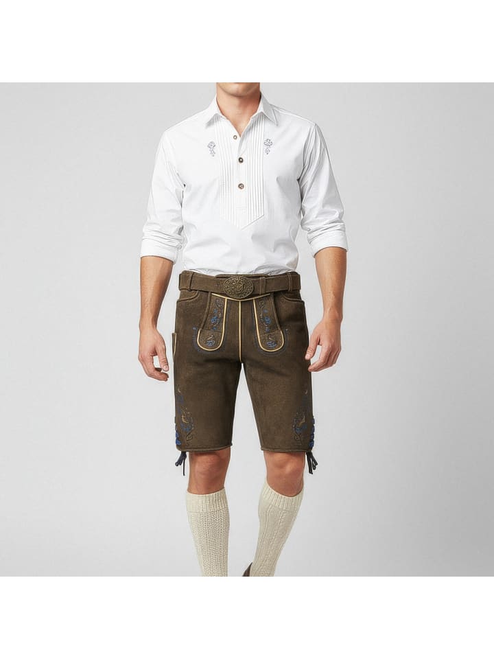 Кожаные брюки Vasili от Krüger - абсолютный маст-хэв на Октоберфесте. Мягкая, эластичная козья кожа с изящной вышивкой на бедрах и нагруднике делает их настоящей приманкой для глаз. Еще одна изюминка - пряжка ремня с замысловатым декором. Ластовица сзади позволяет легко отрегулировать брюки по обхвату талии. Стильные роговые пуговицы на нагруднике и штанинах идеально дополняют эти элегантные кожаные брюки. Сзади также есть карман для кошелька. На правой штанине вы найдете небольшой карман для мелочей, например, мелочи. Эти кожаные брюки сочетают в себе традиционное мастерство с практичными деталями и станут настоящей приманкой для глаз на Октоберфесте. - Мягкая и эластичная кожа - Брюки с ремнем - Изысканная вышивка - Ластовица на поясе для легкой регулировки по обхвату талии - Задний карман для кошелька. Материал: 100% кожа