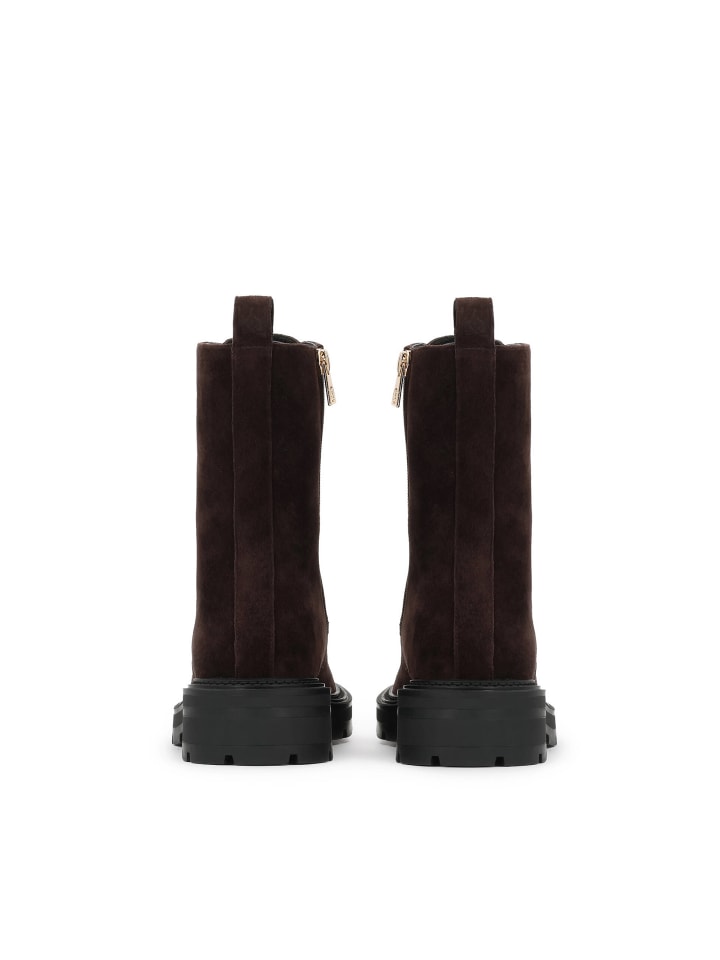 Современные ботинки из высококачественной замши - идеальное сочетание функциональности и стиля. Высокое, плотно прилегающее голенище обеспечивает устойчивость и визуально удлиняет силуэт, а классическая шнуровка дополнена практичной молнией с внутренней стороны для быстрого и удобного надевания и снимания. Ботинки имеют прочную профилированную подошву с четким рисунком протектора, гарантирующую надежную опору и исключительный комфорт в любых условиях. Минималистичный дизайн придает ботинкам современный и универсальный характер - идеально подходит для городского повседневного образа. Обувь для женщин, которые ценят комфорт и неповторимый стиль, не жертвуя качеством и долговечностью.