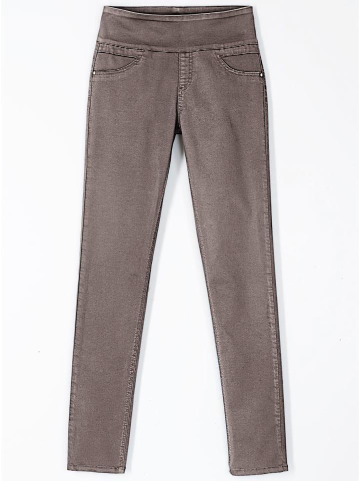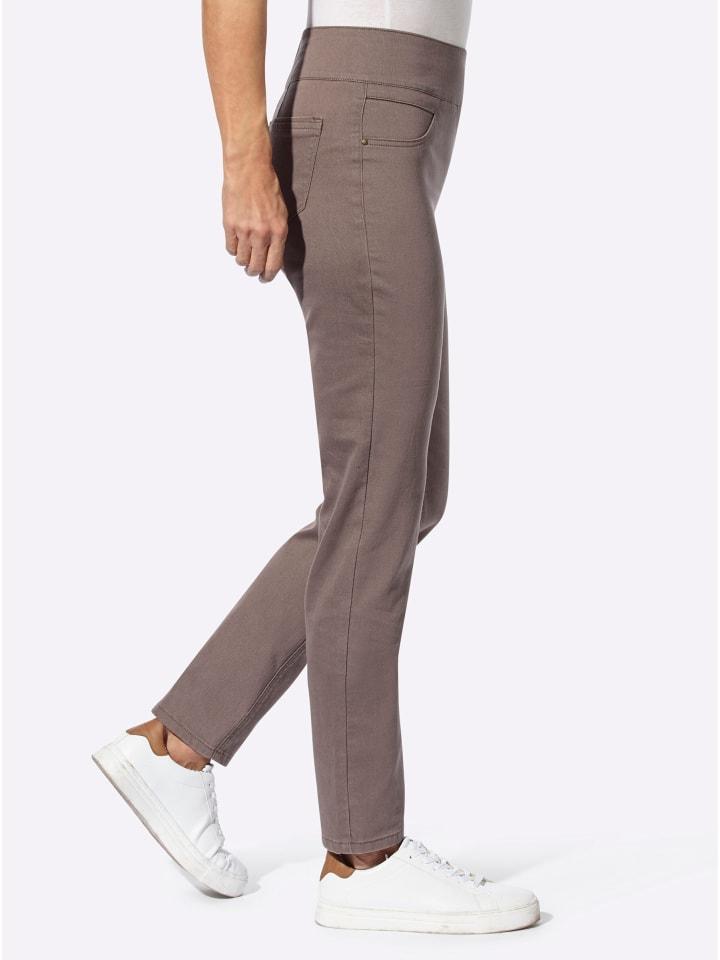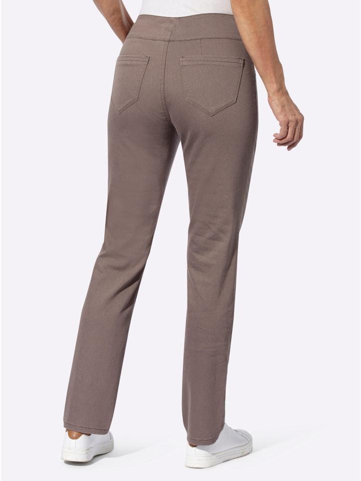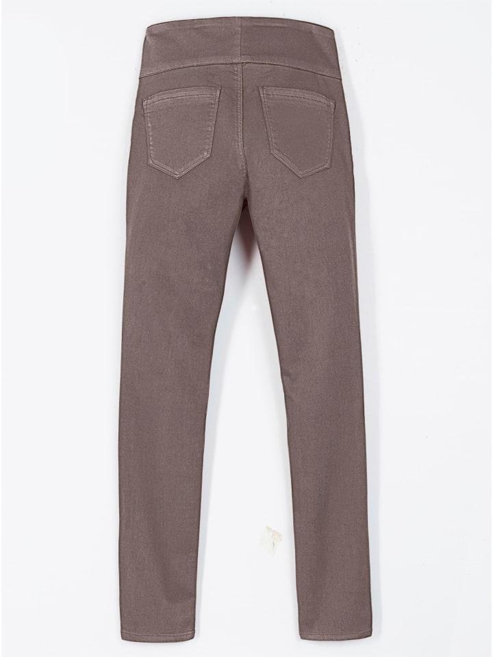 Брюки с высокой талией и эластичным поясом: они не только невероятно удобны, но и умело скрывают живот! Застежка на молнию и два ложных кармана спереди. Два накладных кармана сзади. Длина брючины около 36 см. Соответствует инициативе «Хлопок, сделанный в Африке».