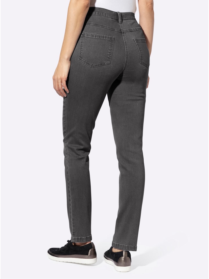 Наши идеальные джинсы! Эластичный пояс и эластичная ткань обеспечивают свободу движений и максимальный комфорт. Застежка на пуговицу и молнию, шлевки для ремня, два ложных кармана спереди и два накладных кармана сзади. Ширина брючины: около 34 см. Ремень в комплект не входит. Соответствует инициативе «Хлопок, сделанный в Африке».