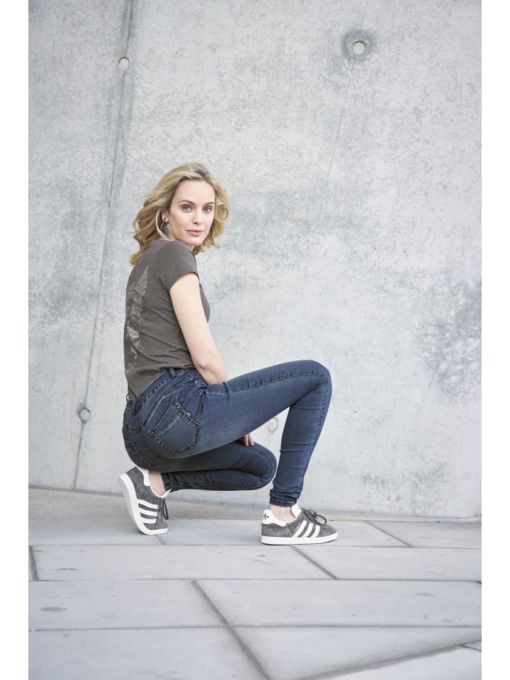 Облегающие женские джинсы скинни из Аризоны. С очень узкими штанинами и высокой талией. Благодаря прочному дениму джинсы очень просты в уходе и долговечны.