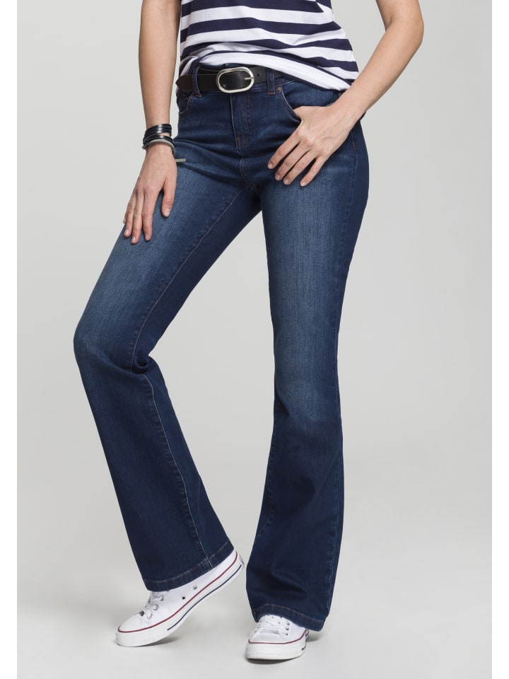 Джинсы HIS стильного кроя bootcut. Пояс со шлевками. Модель с пятью карманами. Аутентичная стирка. Эластичный деним.
