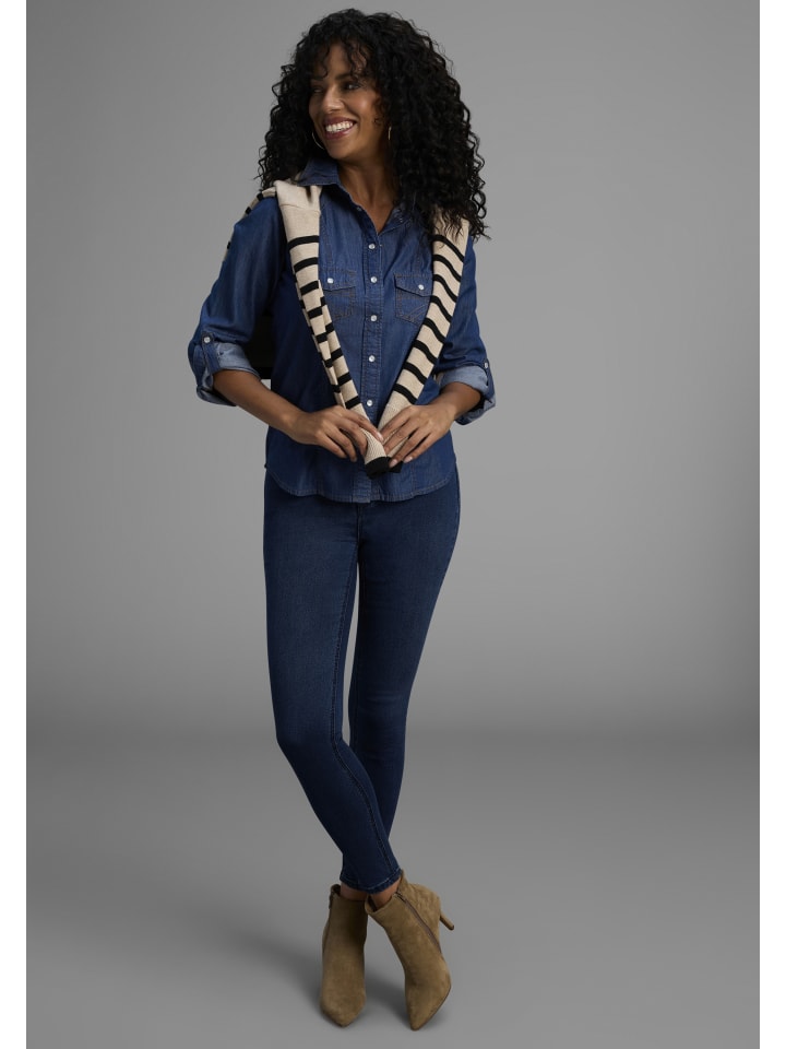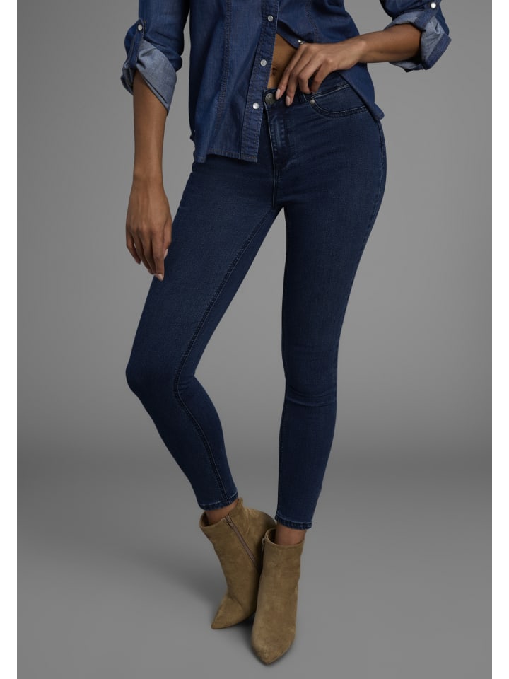 Удобные узкие джинсы из Аризоны с высокой талией и длиной до щиколотки. Облегающий крой с пятью карманами. Высокоэластичный деним.