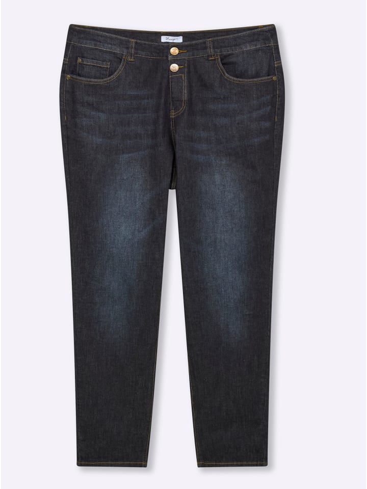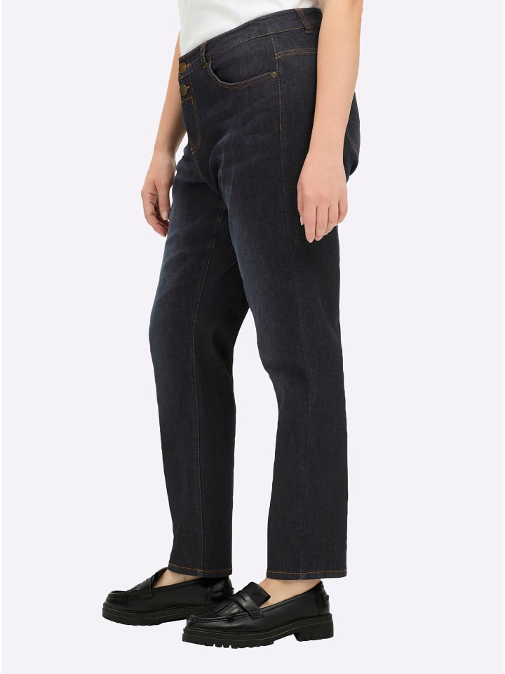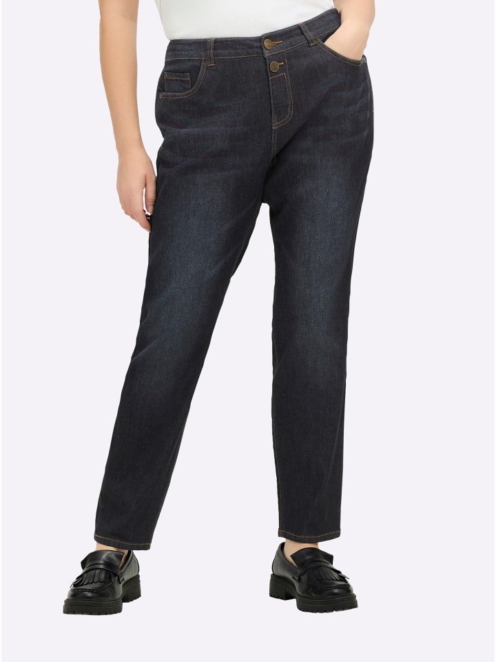 Джинсы бойфренды темно-синего цвета sheego