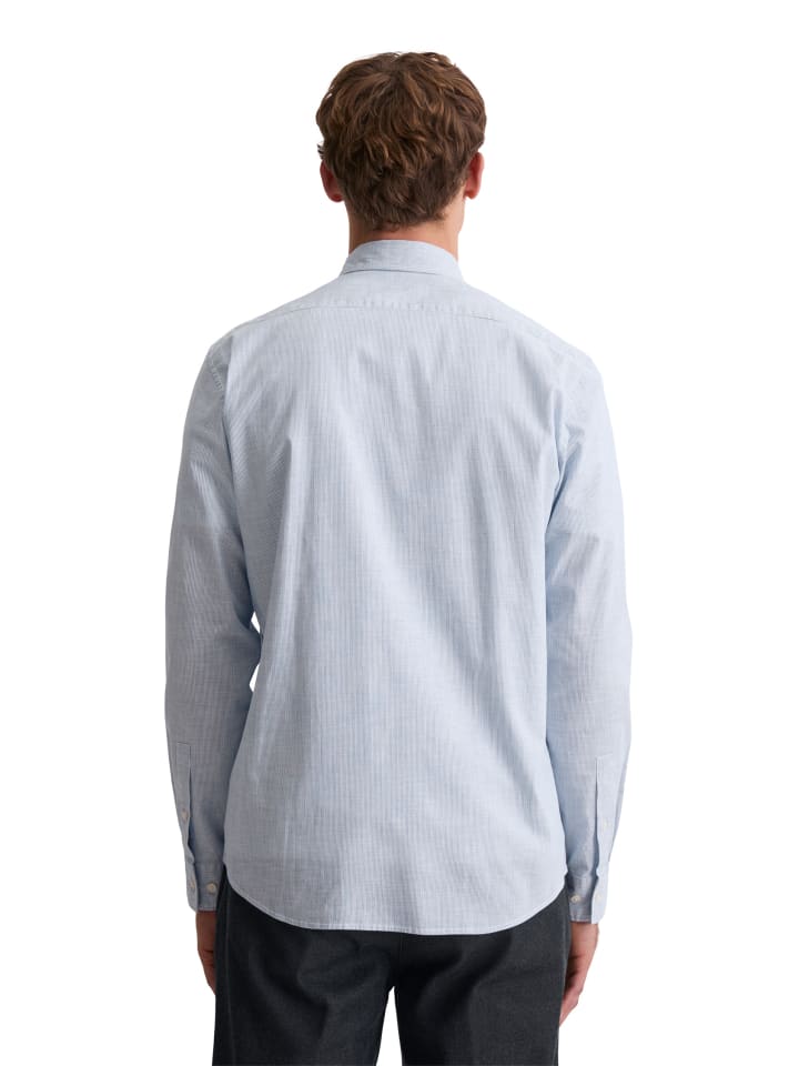 Тонкая полоска с нежной текстурой: эта рубашка из чистого сертифицированного органического хлопка мягкая на ощупь благодаря специальной обработке. Облегающий крой подчеркивает выразительный силуэт, а воротник Kent и пуговицы с логотипом добавляют аутентичные штрихи. Длинные рукава с манжетами на двух пуговицах и закругленный низ делают эту рубашку универсальной и позволяет комбинировать ее с другими предметами одежды.