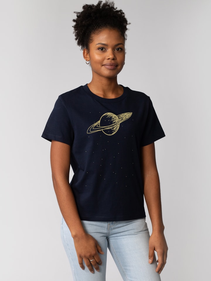 Футболка Сатурн темно-синего цвета wat? Apparel