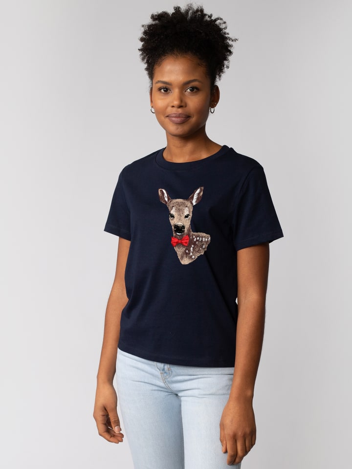 Футболка с рисунком олененка темно-синего цвета wat? Apparel