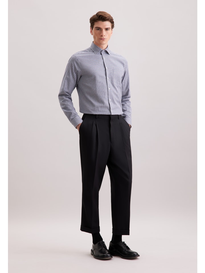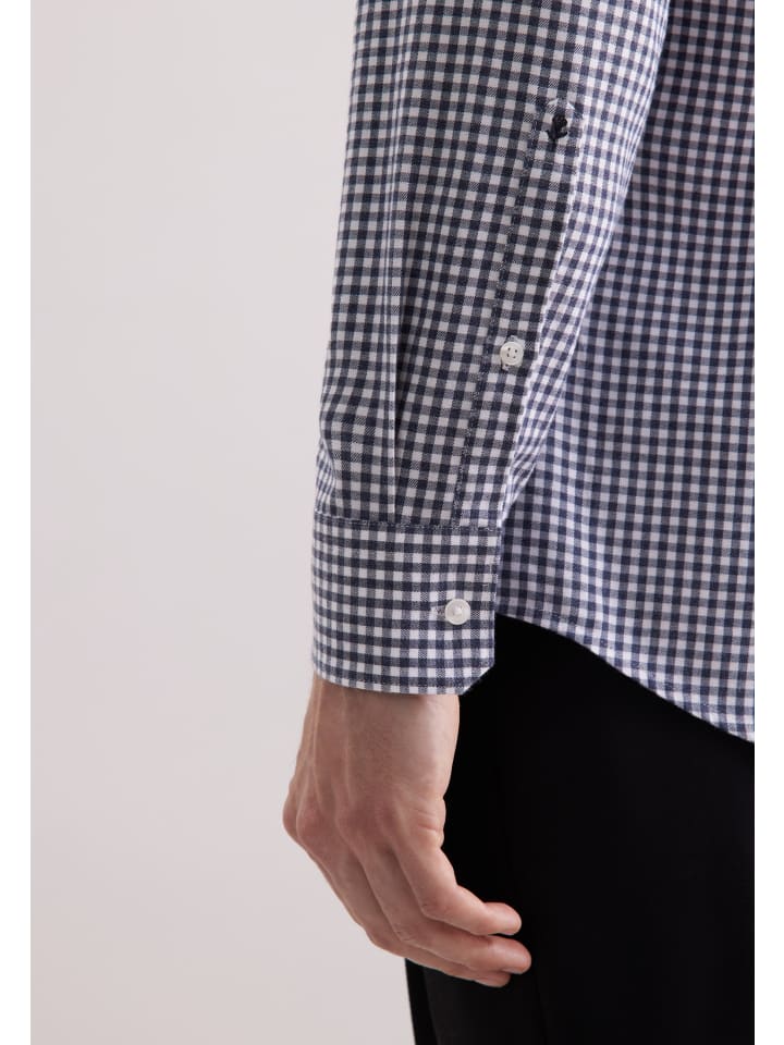 Фланелевая рубашка обычного размера темно-синего цвета Seidensticker