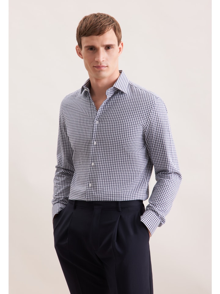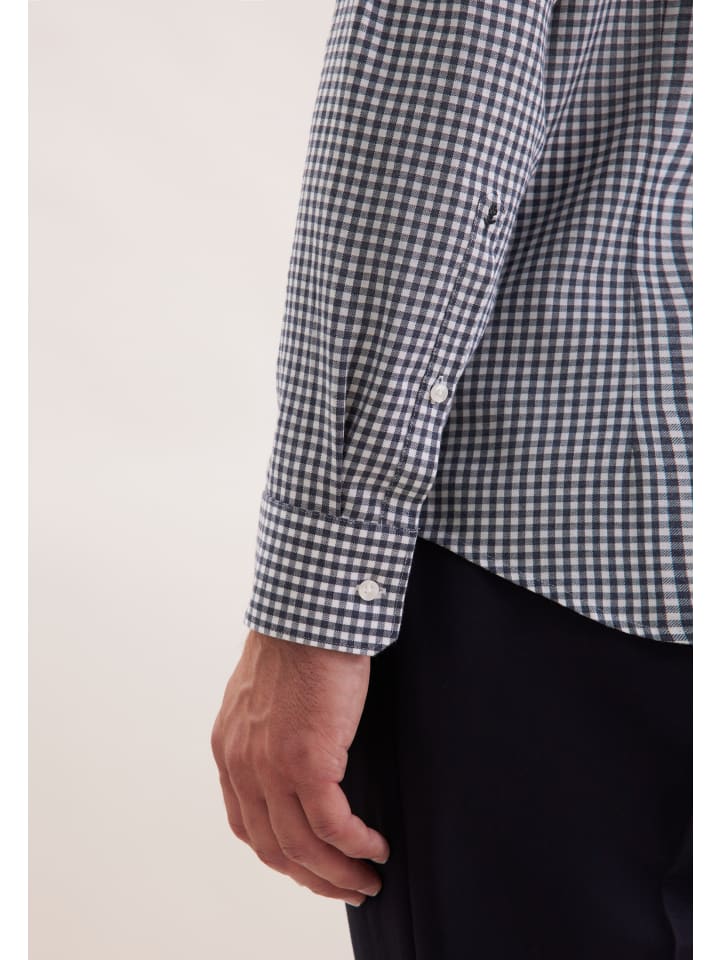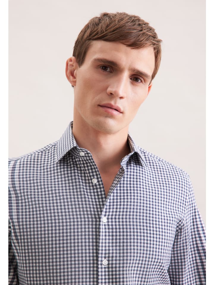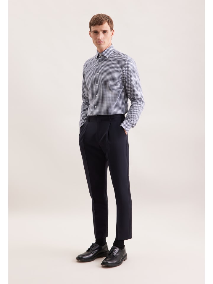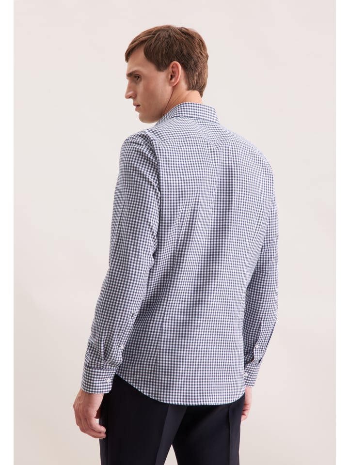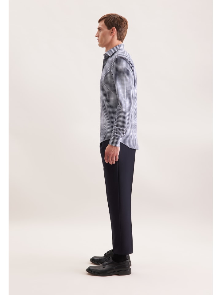 Облегающая фланелевая рубашка темно-синего цвета Seidensticker