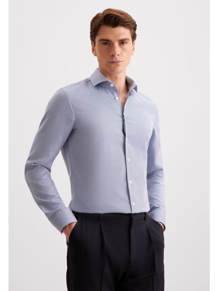 Дополнение к вашему образу и незаменимая вещь в гардеробе: эта длинная деловая рубашка из коллекции Seidensticker «SMART CLASSICS» впечатляет своей мужественной эстетикой. Будь то офис, домашний офис или мероприятие, это элегантная классика, которую легко носить. Благодаря облегающему крою эта деловая рубашка плотно облегает фигуру и идеально подчеркивает фигуру. Характерный узор «гусиная лапка» делает ее абсолютной необходимостью. Эта рубашка воплощает классическую элегантность в современной интерпретации. Воротник Kent подчеркивает универсальный деловой характер.