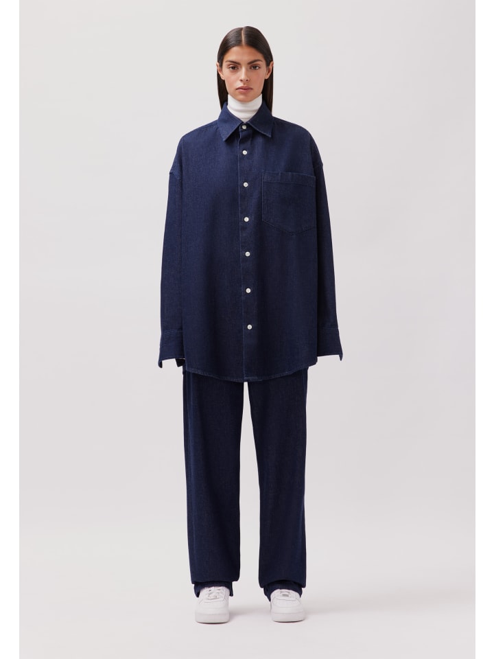 Рубашка унисекс оверсайз темно-синего цвета Studio Seidensticker