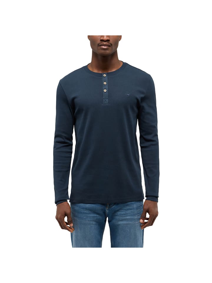 Мужская рубашка с длинным рукавом MUSTANG Arminto с воротником-хенли. Однотонная рубашка с длинным рукавом, планкой на пуговицах и небольшим вышитым логотипом. Мягкий органический хлопок обеспечивает исключительный комфорт.