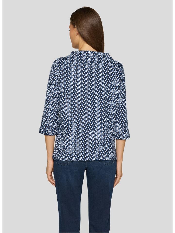 Эта рубашка впечатляет геометрическим принтом по всей поверхности, создавая современный и динамичный образ. Слегка укороченный воротник-стойка добавляет особый штрих, а рукава три четверти делают ее универсальной. Эластичная ткань обеспечивает комфорт и оптимальную посадку. Мягкая, эластичная ткань для непревзойденного комфорта. Прямой, свободный крой. Настоящая приманка для модных повседневных образов.