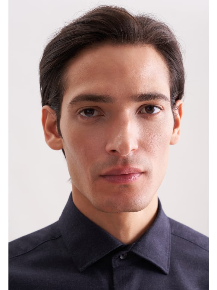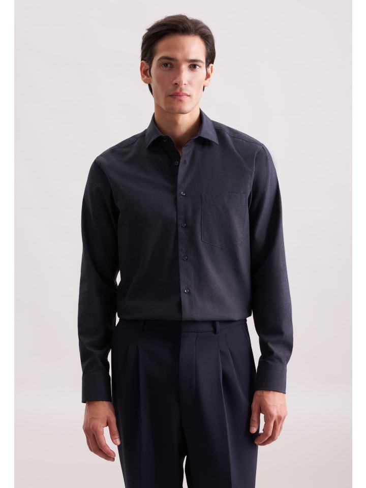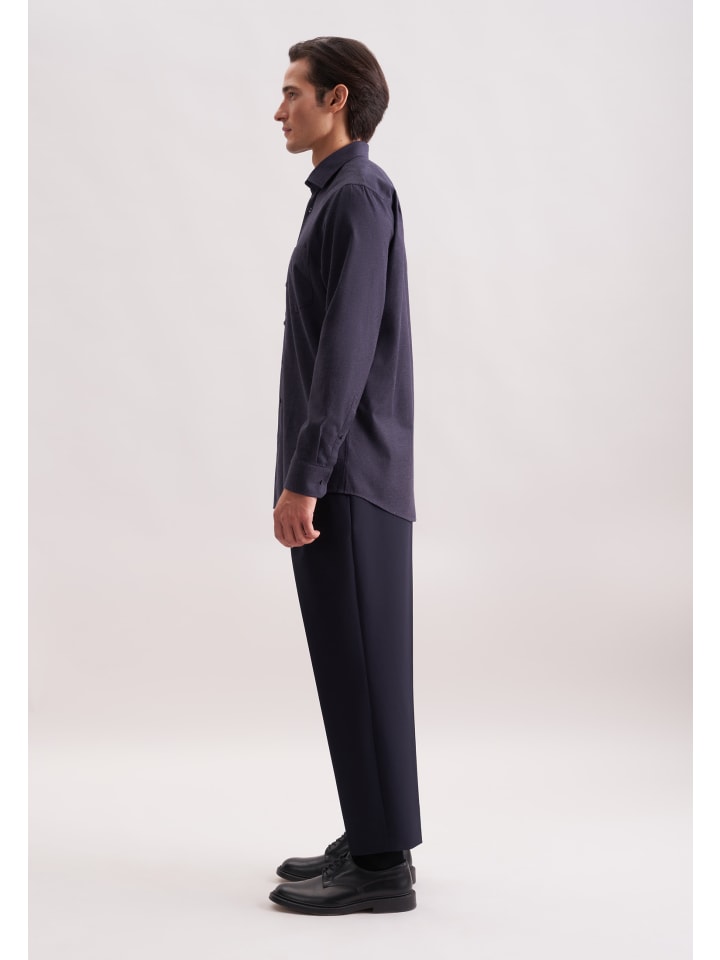 Фланелевая рубашка обычного размера темно-синего цвета Seidensticker