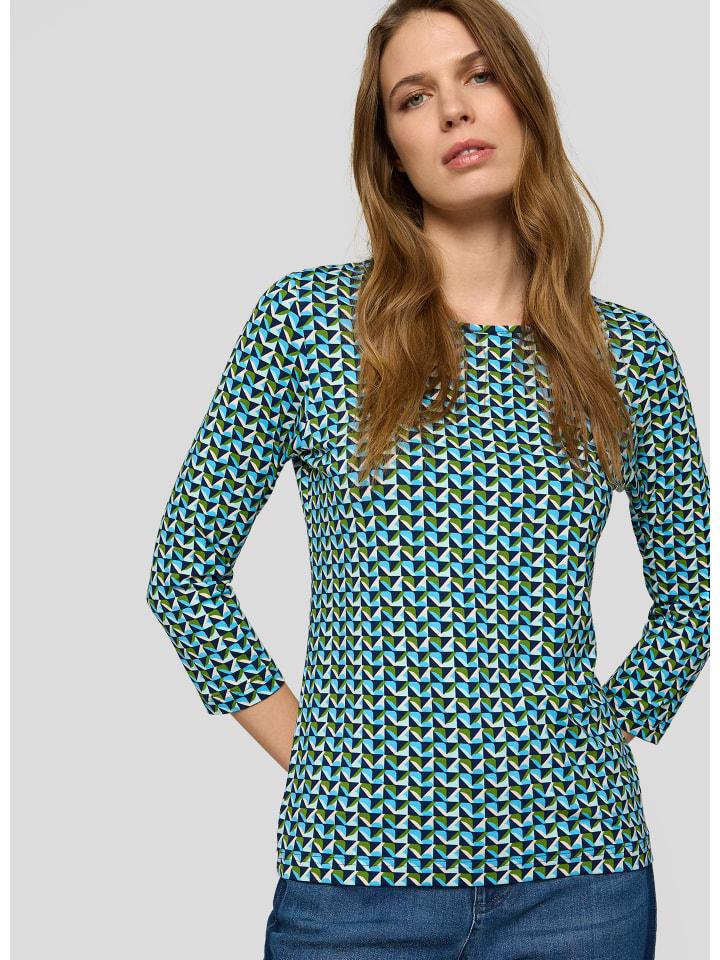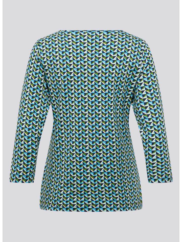 - Рубашка с геометрическим принтом по всей поверхности и круглым вырезом горловины