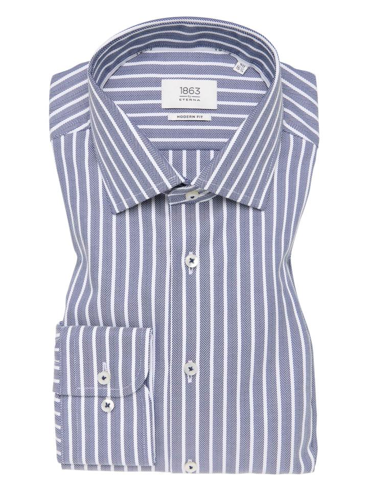 Рубашка ETERNA впечатляет своим современным кроем, создавая модный, приталенный силуэт. Классический воротник Kent и отложные манжеты обеспечивают универсальность для различных стилей.