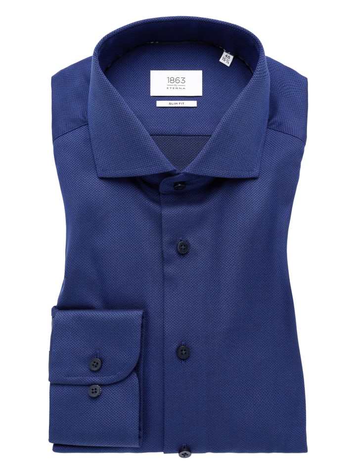 Приталенный крой подчеркивает современный силуэт и обеспечивает идеальную посадку. Отсутствие нагрудного кармана и отложной клапан придают рубашке минималистичный, элегантный вид. Манжеты-трансформеры позволяют выбрать застежку на пуговицы или запонки, добавляя нотку изысканности. «Исключительное качество, высококачественные хлопковые ткани с превосходной отделкой и высокое качество изготовления - все эти преимущества объединены в нашей премиальной линейке 1863 от ETERNA».