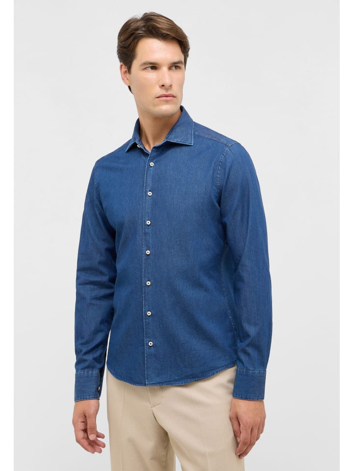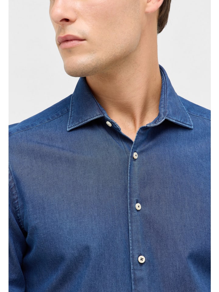 Рубашка приталенного кроя темно-синего цвета Eterna