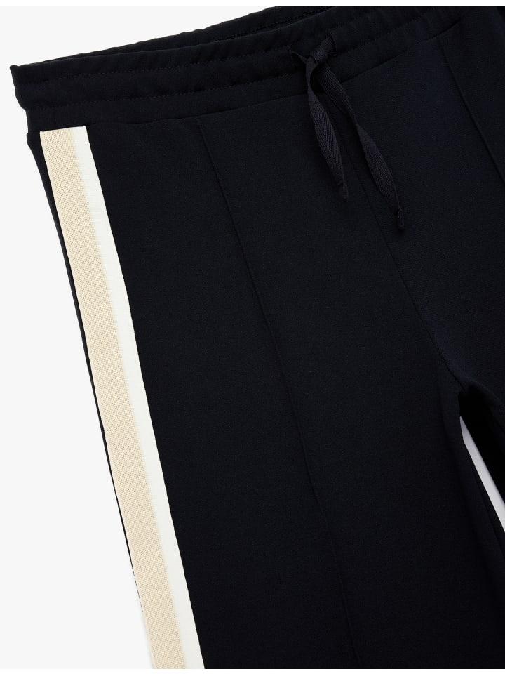 Эти брюки впечатляют широкими штанинами и полосками по бокам, создавая современный образ. Завязывающийся пояс на талии позволяет индивидуально регулировать посадку, а удобный материал обеспечивает высокий уровень комфорта. Идеально подходит для повседневных образов или расслабленного дня.