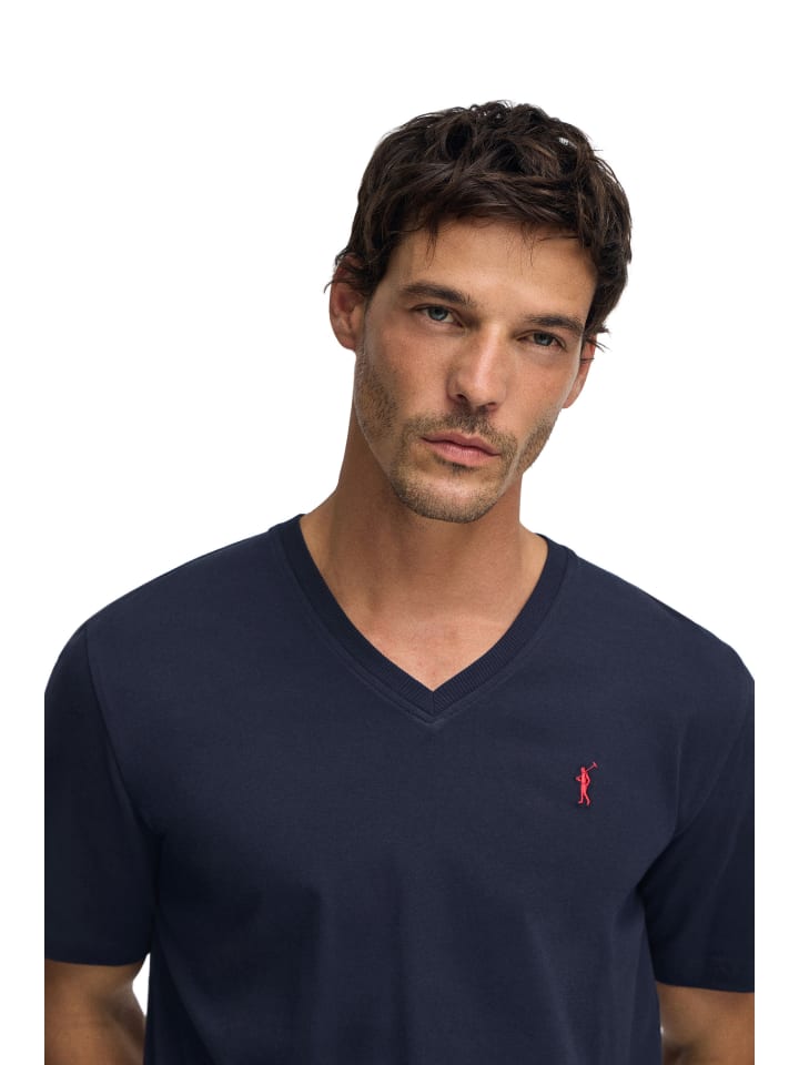 Мужская футболка с короткими рукавами, прямым кроем и V-образным вырезом. Тонкий хлопок обеспечивает мягкость и комфорт. Создана для тех, кто ищет особый стиль, не жертвуя при этом сдержанностью. Идеально подходит для повседневной носки.