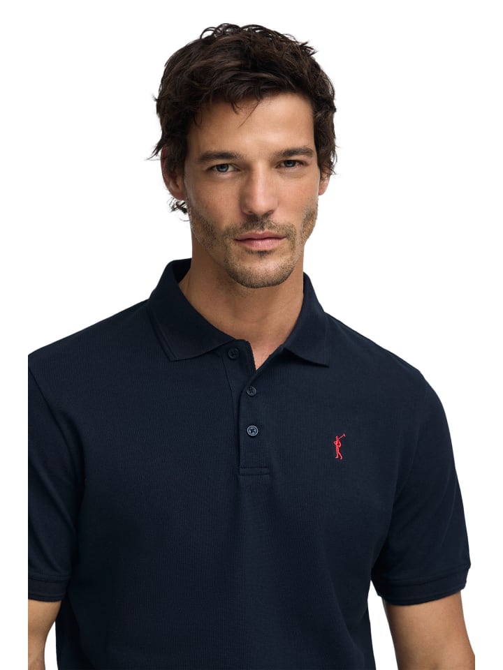 Мужская рубашка-поло с короткими рукавами, прямым кроем, классическим воротником и тремя пуговицами. Хлопковый пике делает ее классическим базовым вариантом, идеально подходящим для повседневного образа.