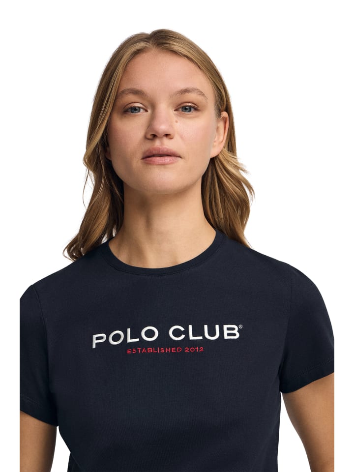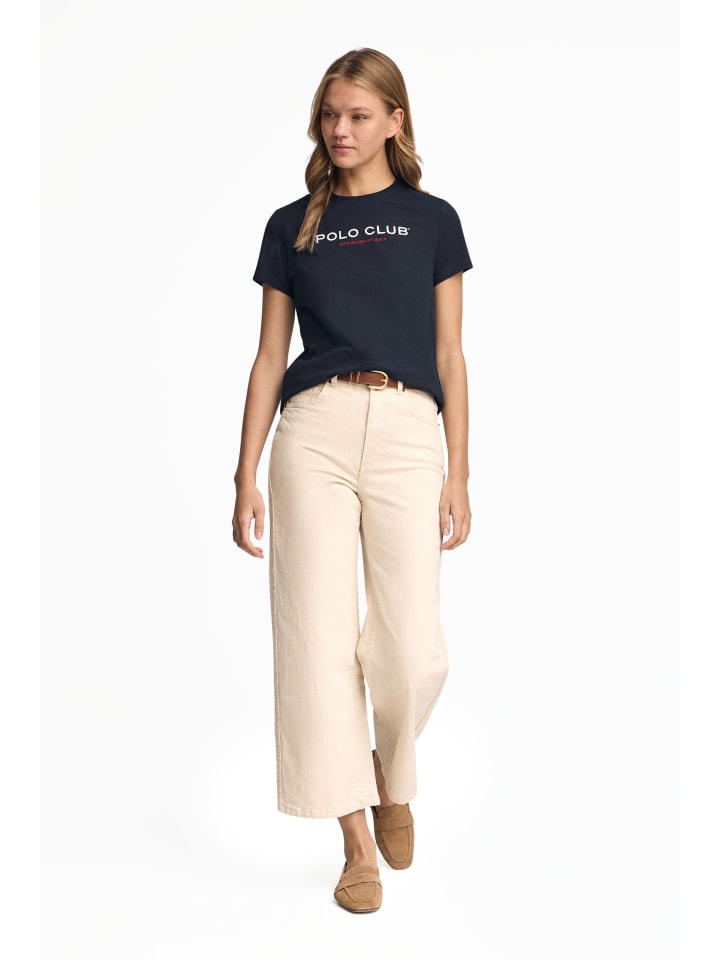 Женская футболка с короткими рукавами, классическим кроем и круглым вырезом. С графическим логотипом Polo Club. Изготовлена из хлопка, удобная и универсальная, подходит для создания повседневных образов.