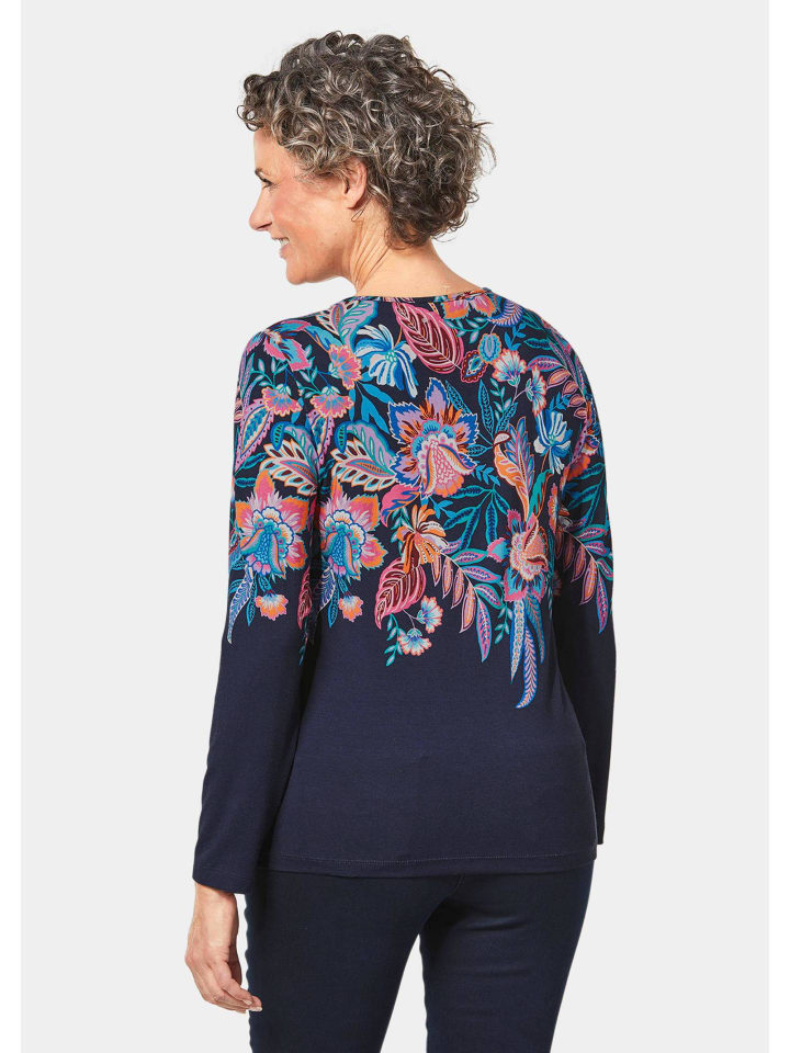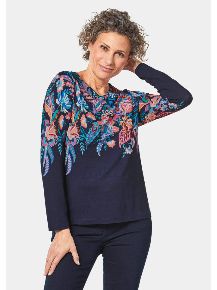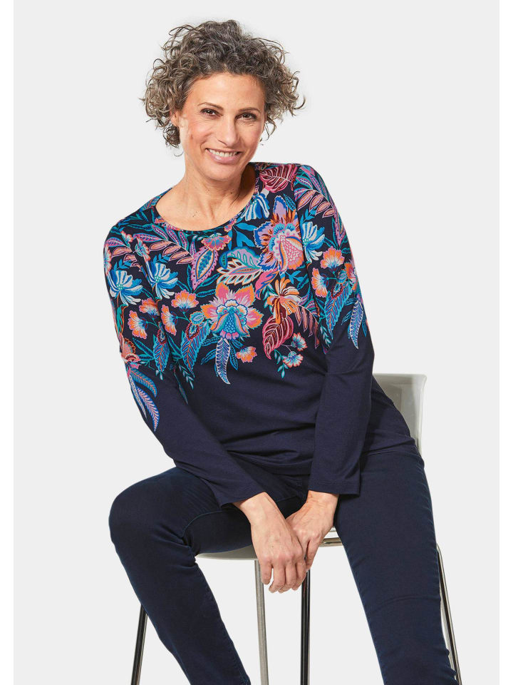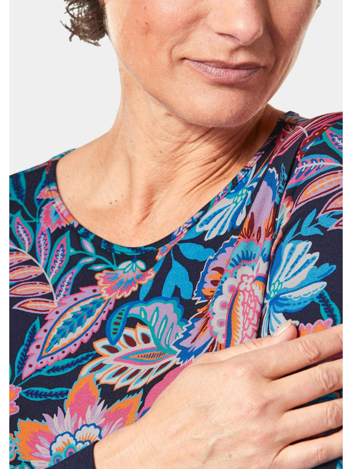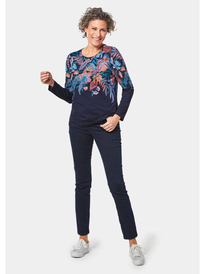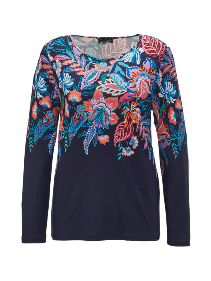 Футболка с принтом ярких цветов, темно-синяя / с рисунком GOLDNER 6 970₽