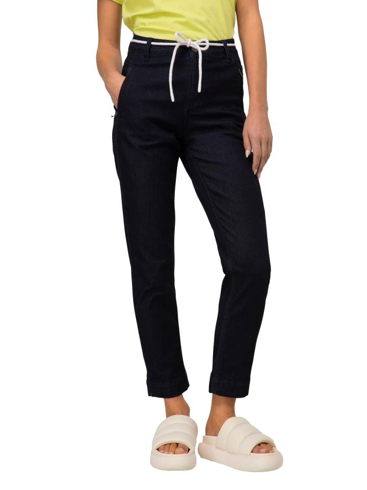 Джинсы Julia 7/8 Push-Up - женственный силуэт с приподнятым низом. Узкий крой с пятью карманами из модного предварительно выстиранного эластичного денима с обычной посадкой. Пояс со шлевками для ремня, застежкой на пуговицу и молнию. 2 кармана на молнии спереди, 2 кармана сзади. Изготовлены из переработанного полиэстера. Длина внутреннего шва: около 70 см, ширина посередине: около 15 см.