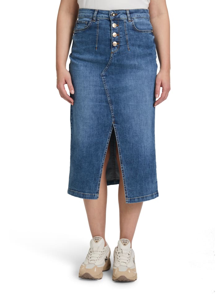 Повседневный стиль становится модным - эта джинсовая юбка предлагает максимальную свободу для вашего стиля. Современный дизайн швов, женственный разрез и облегающий крой обеспечат модный образ. Застежка на пуговицу, молнию и накладные карманы сочетают в себе функциональность и знание трендов - настоящий must-have для современных повседневных образов.
