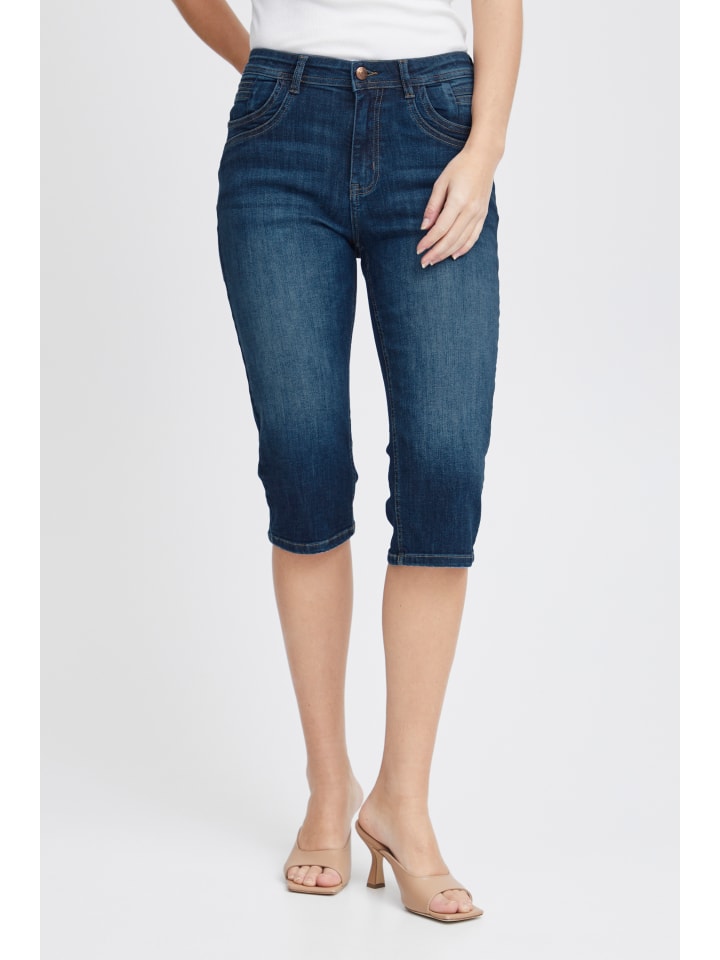 Эти женские джинсы-бермуды сочетают в себе облегающий крой и классический пятикарманный крой. Средняя посадка и эластичная ткань обеспечивают комфорт и разнообразие вариантов для создания образа.