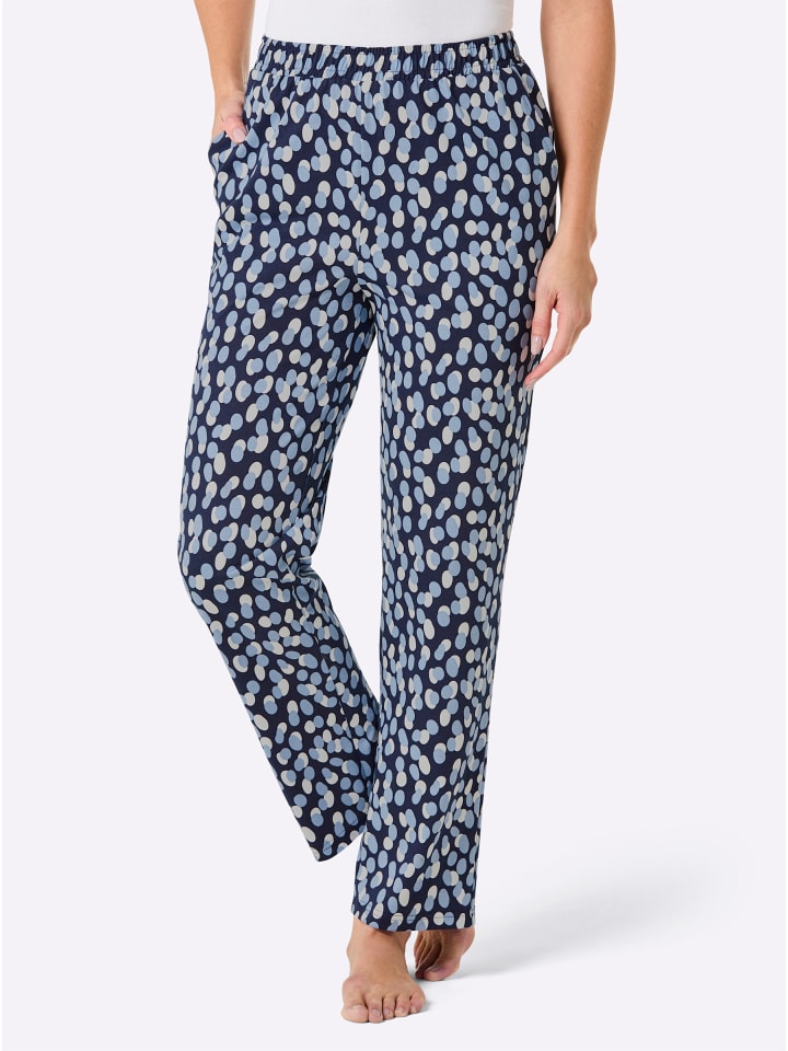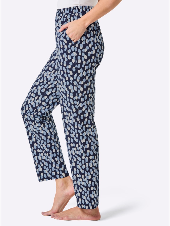 Длинные брюки от Feel Good с веселым рисунком в горошек. Втачной пояс с французскими карманами. Одинарный трикотаж. Поддерживает инициативу «Хлопок, сделанный в Африке».