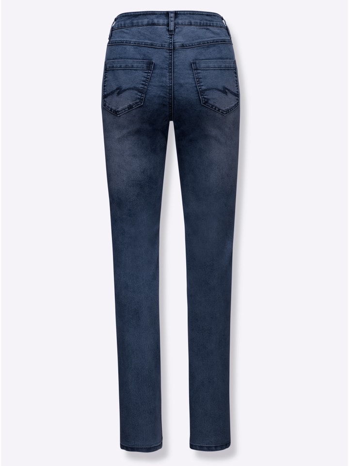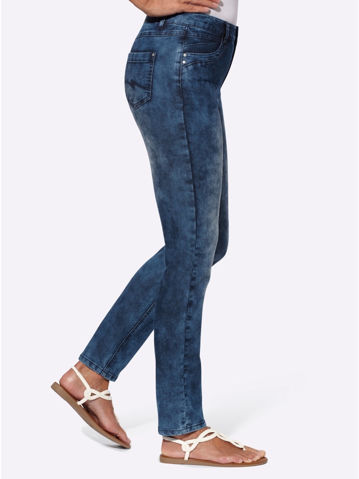 Облегает фигуру и не сковывает движений: джинсы в современном стиле! Модель с пятью карманами, шлевками для ремня, застежкой на пуговицу и молнию. Декоративные заклепки на передних карманах, декоративная вышивка на задних карманах. Длина брючины примерно 32 см. Ремень в комплект не входит. Поддерживает инициативу «Сделано в Африке» (Cat Made in Africa).