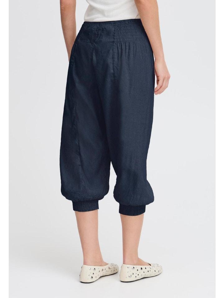 Свободные брюки 7/8 с мягкой отделкой, широким поясом со сборками и резинкой на брючинах. Современный и сдержанный вид.