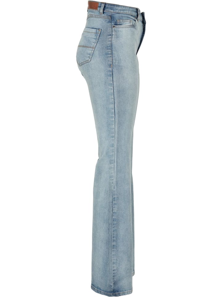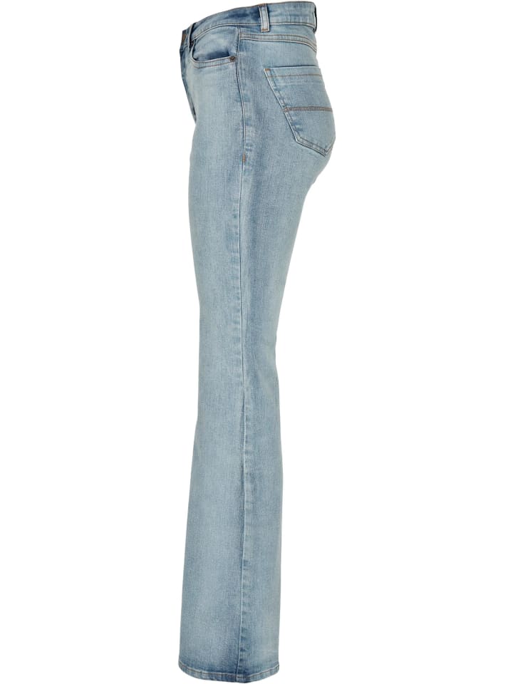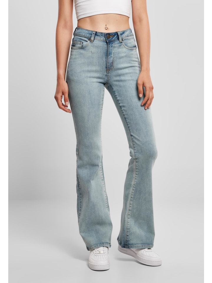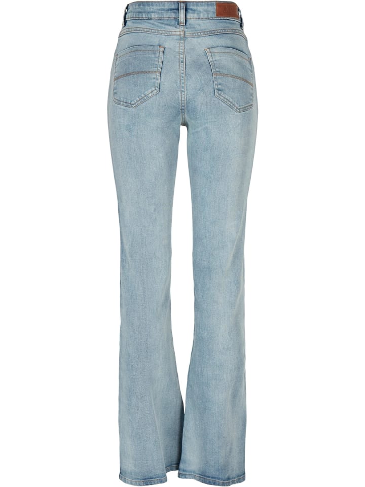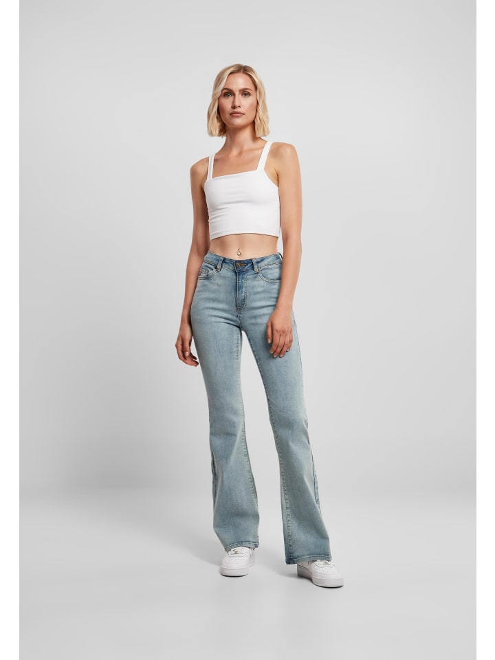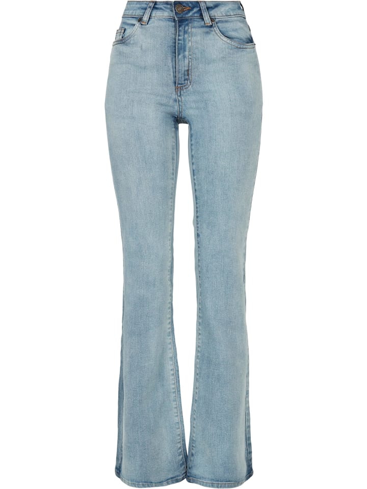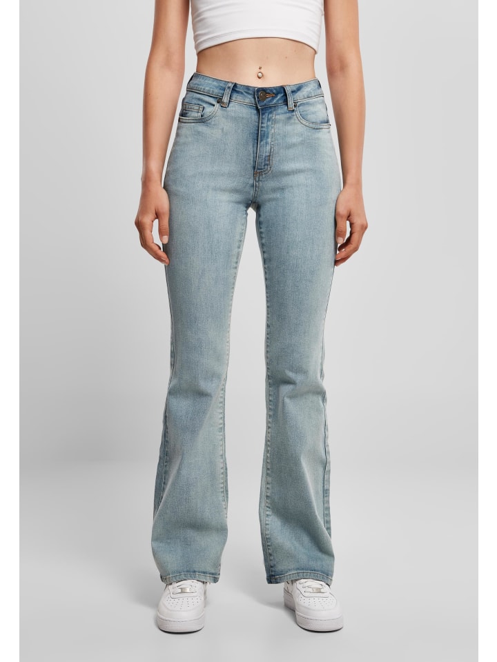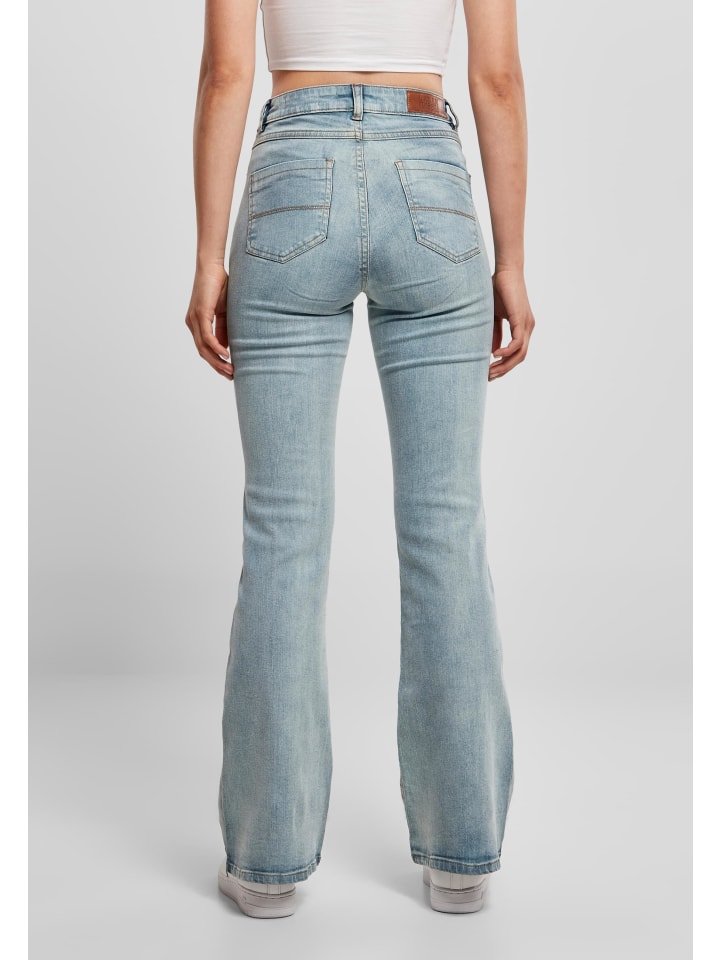 90-е вернулись с новой силой! Эти модные женские джинсы облегающего кроя с расклешенными от колена штанинами. Эластичный деним с добавлением эластана обеспечивает идеальную посадку. У джинсов также есть два боковых кармана и два накладных кармана сзади. Они удобно сидят на талии.