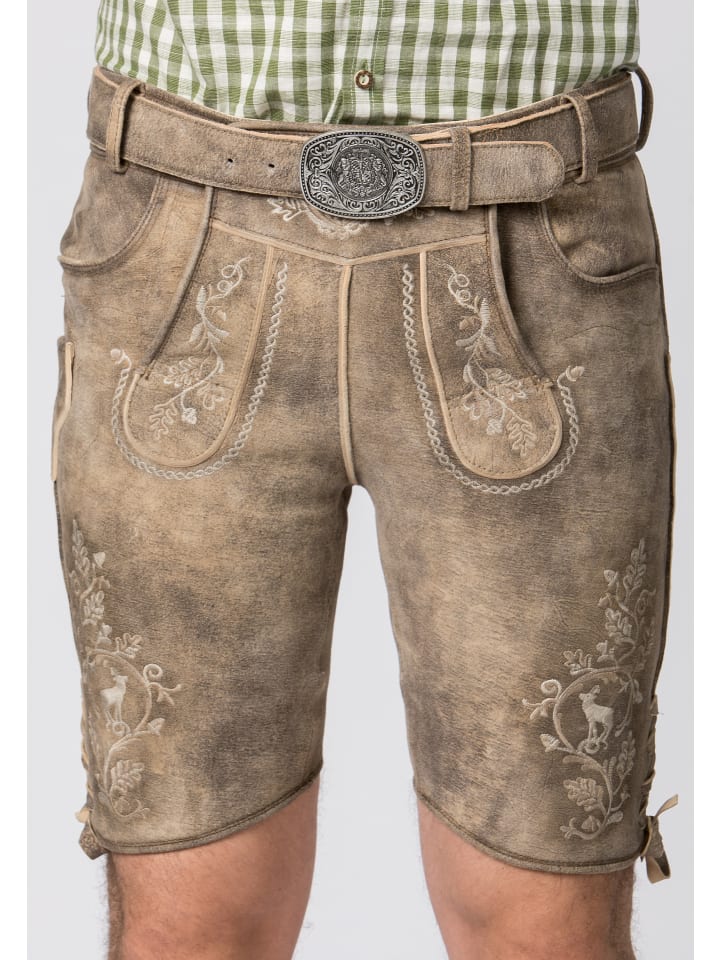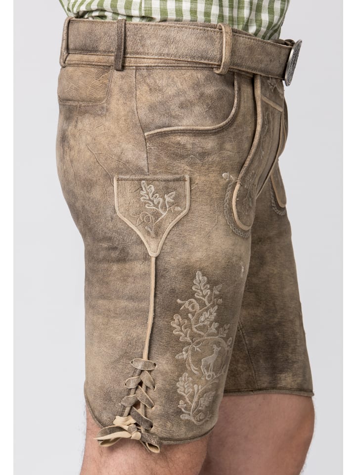 Бриджи Girgl в традиционном стиле из кожи от Stockerpoint Classics. Эти короткие кожаные штаны из высококачественной дубленой замши с отделкой под олень символизируют связь с родиной. Вышивка в виде листьев выполнена по традиционным рисункам и точно воспроизведена вручную в классических цветах. Эти бриджи в традиционном стиле украшены вышивкой с изображением оленей и дубовых листьев, что создает неповторимый стиль. Бриджи поставляются с ремнем с баварской пряжкой из старинного серебра.