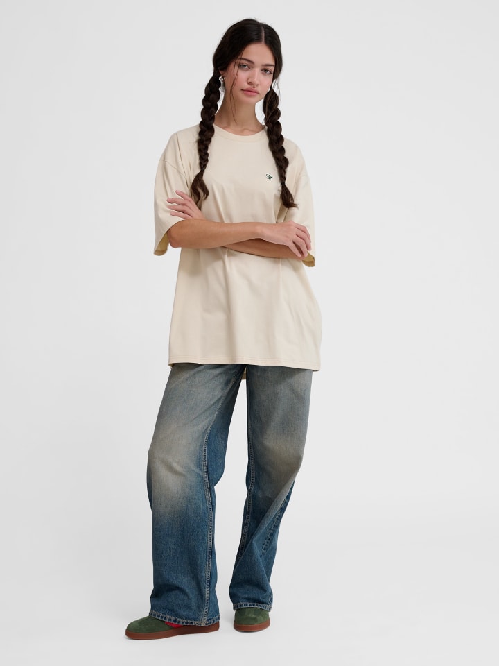 Эта футболка комфортна в течение всего дня благодаря мягкому трикотажному материалу. Футболка украшена вышитым логотипом Hummel на груди и имеет свободный крой для создания непринужденного образа. Содержит органический хлопок