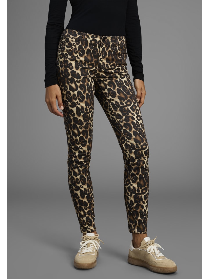 - Брюки с пятью карманами с модным анималистичным принтом.