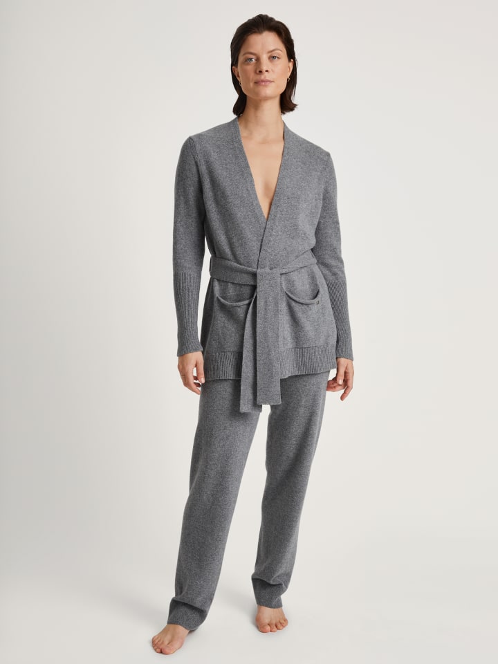 Новая коллекция домашней одежды THE COSY COLLECTION воплощает идеальную, гармоничную и спокойную роскошь. Она включает в себя элегантное пальто, куртку-халат, удобные домашние брюки и практичные брюки с манжетами, все доступны в нежном цвете Cosy Grey Melé. Изготовленные из 100% мериносовой шерсти, сертифицированные по стандарту Responsible Wool Standard, эти изделия предлагают роскошный вид и разнообразные возможности для создания стильного образа.